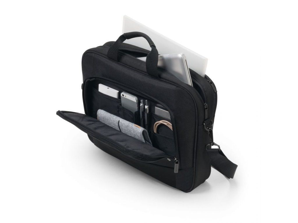 Lehké pouzdro na notebook s ochranným polstrováním a inteligentním úložným prostorem. Kompaktní pouzdro Eco Traveler BASE nabízí ideální ochranu notebooků mezi 15 a 15,6'' díky polstrování z pěny s vysokou hustotou (HDF). Pouzdro zaručuje mimořádnou stabilitu a ochranu díky kovovému rámu a flexibilní pohyblivosti díky svému lehkému designu. Je zde další přihrádka, do které můžete snadno ukládat dokumenty. Váš smartphone nebo jiné menší předměty, jako jsou kabely, pera nebo nabíječky, lze uložit do praktické přední kapsy, takže jsou vždy po ruce. Pouzdro se pohodlně nosí díky jeho neoprenovému polstrovanému držadlu a díky integrovanému popruhu jej lze během několika sekund připevnit ke kufru. Pouzdro můžete nosit také pomocí nastavitelného ramenního popruhu. Eco Traveler BASE je proto pro vás ideální, pokud jste stále na cestách a chcete podpořit recyklaci PET lahví ekologickým pouzdrem.Technické parametry