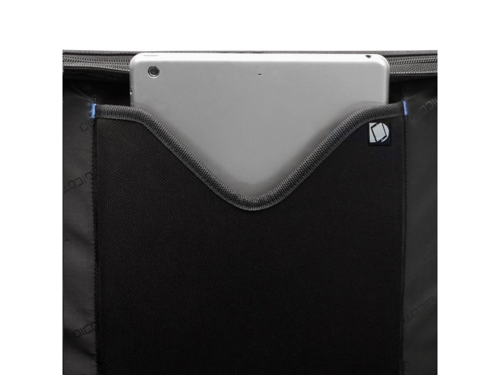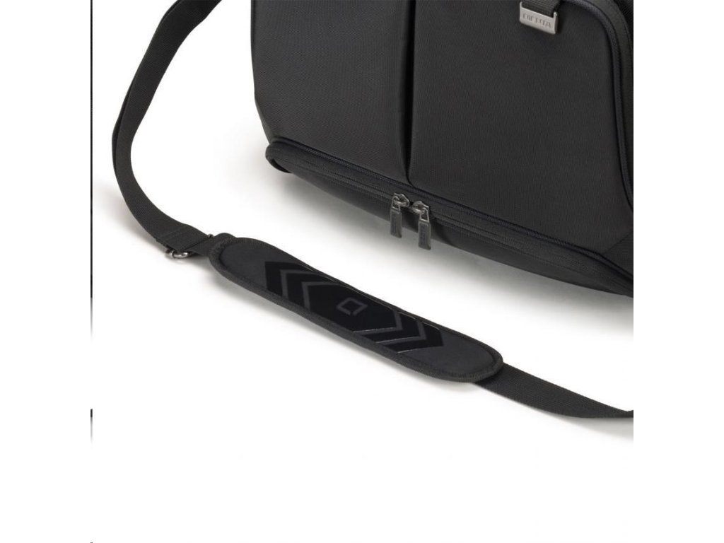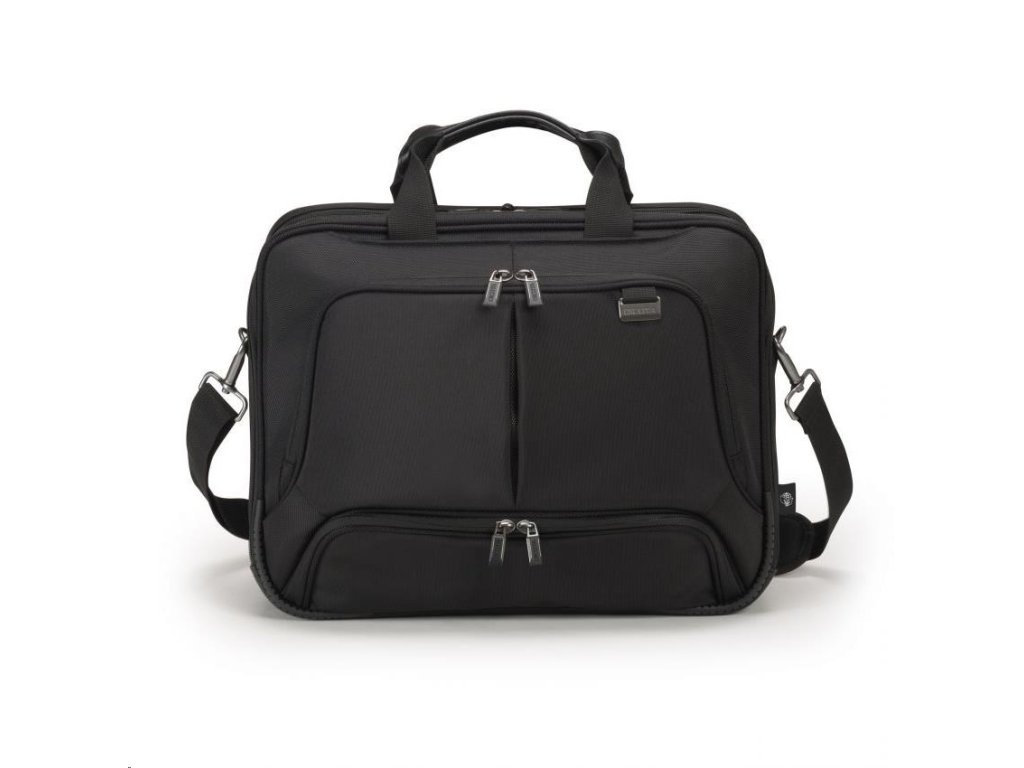 Cestujte "1. triedou" so zariadením Eco Top Traveller PRO. Taška toploader vás spoľahlivo sprevádza všade a spĺňa najvyššie štandardy kvality, funkčnosti a ochrany: vďaka pozornosti venovanej detailom je táto taška DICOTA jedným z vašich najspoľahlivejších obchodných partnerov! Oddeľovacia stena systému fitall v priehradke na notebook je chránená cez notebook a automaticky sa prispôsobí veľkosti od 15 do 17.3". Perforovaný, a teda ľahký penový materiál EVA v uzamykateľnom priestore na notebook dokonale chráni okraje vášho zariadenia. Povrchová úprava s protišmykovou technológiou zaisťuje dokonalé uchopenie notebooku v priehradke. Vynikajúca ochrana pre váš tablet do 12.9" vďaka priehradke v tvare EVA s mimoriadne mäkkou vnútornou podšívkou Nylex. Veľkorysý úložný priestor na dokumenty. Predné vrecko s príveskom na kľúče a vkladacími vreckami umožňuje organizovať osobné vybavenie a poskytuje priestor na ďalšie mobilné príslušenstvo. Ďalšie vrecko na nabíjačku a káble. Taška je ľahká a pohodlná do ruky vďaka kvalitným rukovätiam z pravej kože. Popruh na vozík možno použiť aj ako ďalšiu priehradku na dokumenty. Dno tašky je vyrobené z nepremokavého materiálu. Puzdro Eco Top Traveller PRO je preto pre vás ideálne, ak ste stále na cestách a chcete podporiť recykláciu PET fliaš ekologickým puzdrom.