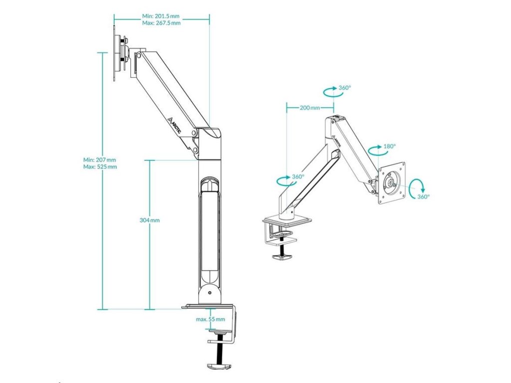 - JEDNODUCHÁ A RÝCHLA MONTÁŽ - Vďaka stolovej svorke možno rameno monitora voľne a ľahko umiestniť na okraj stola. Rameno je kompletne zmontované a jednoducho sa nasadí na tyč. Montáž alebo neskoršie premiestnenie je preto hračka a dá sa vykonať rýchlo.