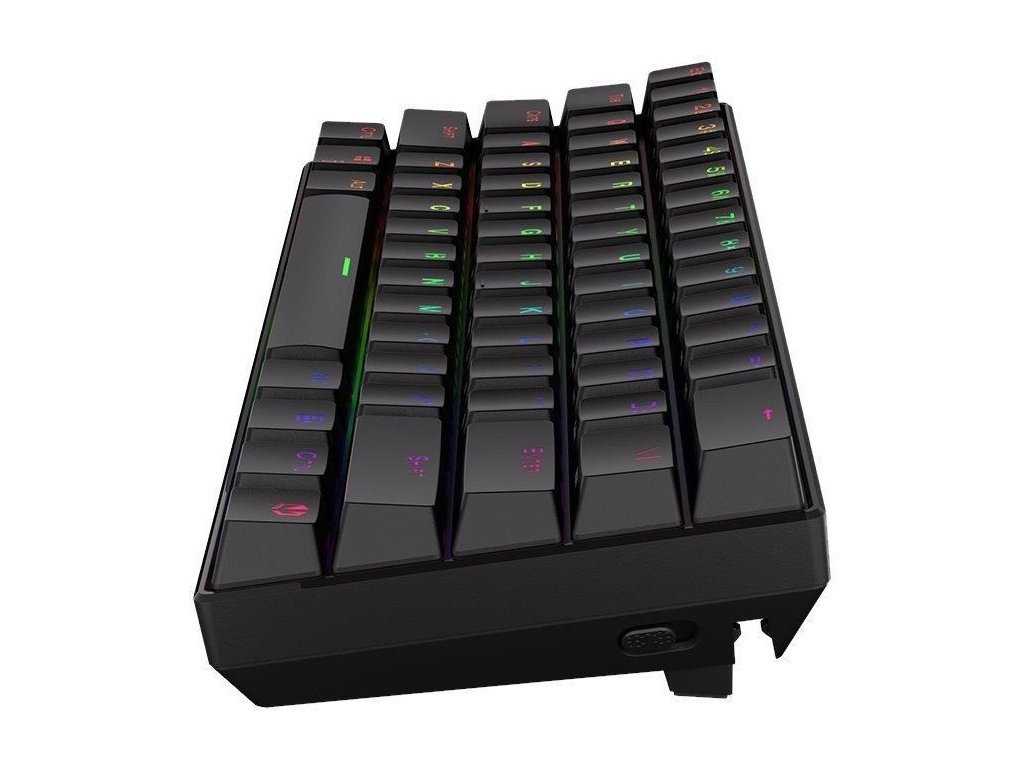 Bezdrôtová mechanická herná klávesnica v kompaktnom prevedení je vybavená spínačmi Kailh Brown s dokonalou odozvou a životnosťou až 70 miliónov stiskov. Klávesy sú RGB podsvietené a ponúkajú možnosť vlastného nastavenia. Klávesy sú navyše tiež plne programovateľné, vďaka čomu je možné klávesnicu individualizovať presne podľa potrieb hráča a hraného hry. Samozrejme, nechýba ani funkcia Anti-Ghosting a N-Key rollover. Pripojenie k počítaču je možné realizovať buď bezdrôtovo cez Bluetooth alebo mini USB prijímač a technológiu 2,4 GHz, alebo aj drôtovo pomocou USB kábla, ktorý zároveň slúži na nabíjanie.