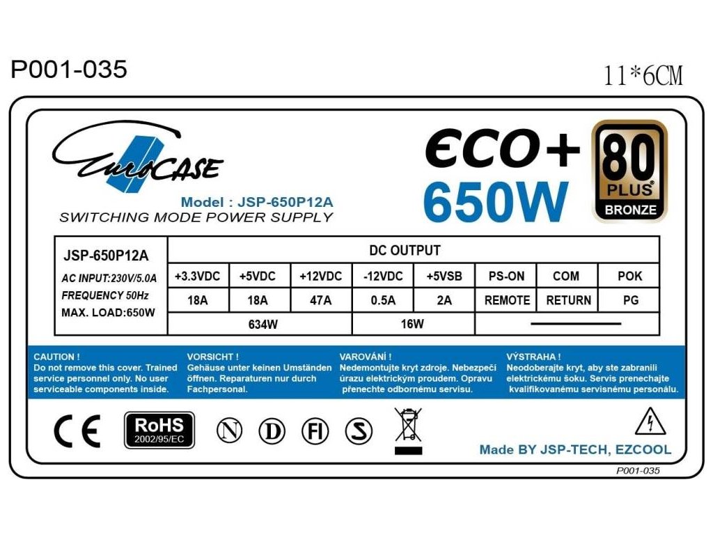 EUROCASE zdroj 650W Eco+, 120mm, 80+ Bronze, ATX