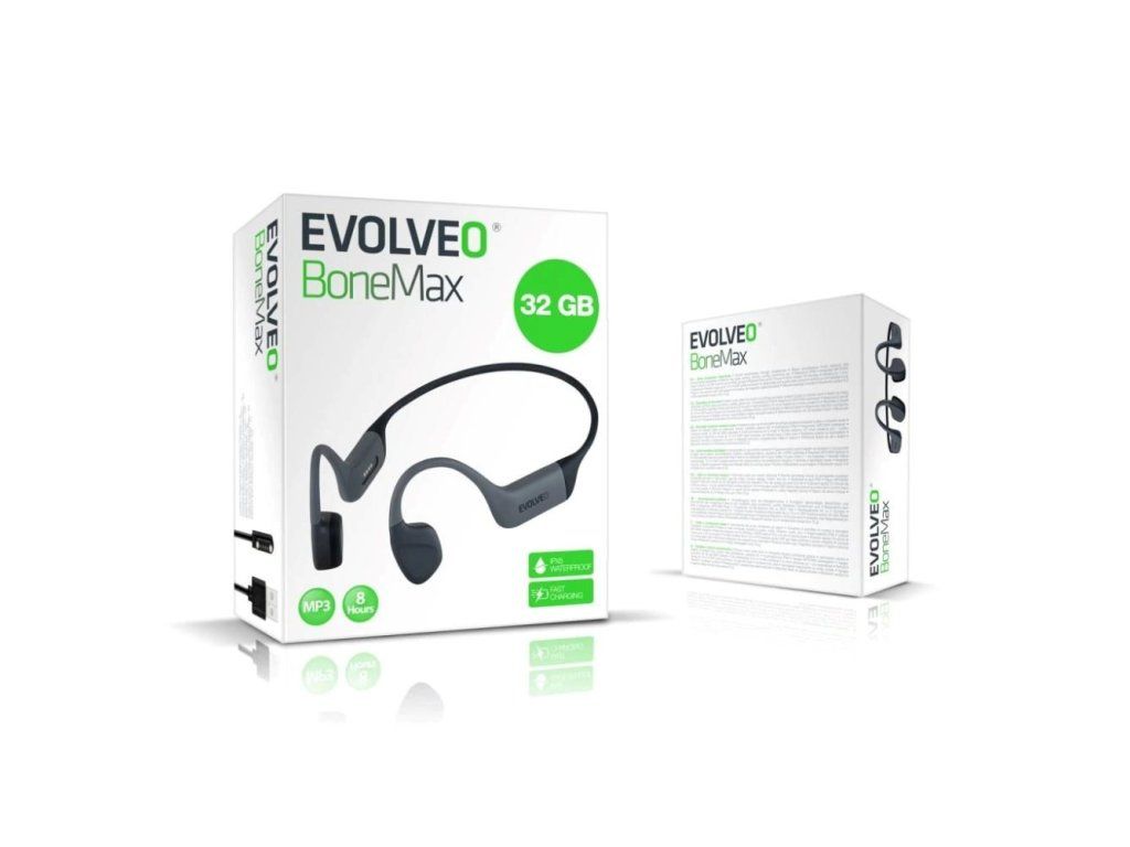 EVOLVEO bezdrátová sluchátka BoneMax MP3 32GB, na lícní kosti, IPX8, šedá