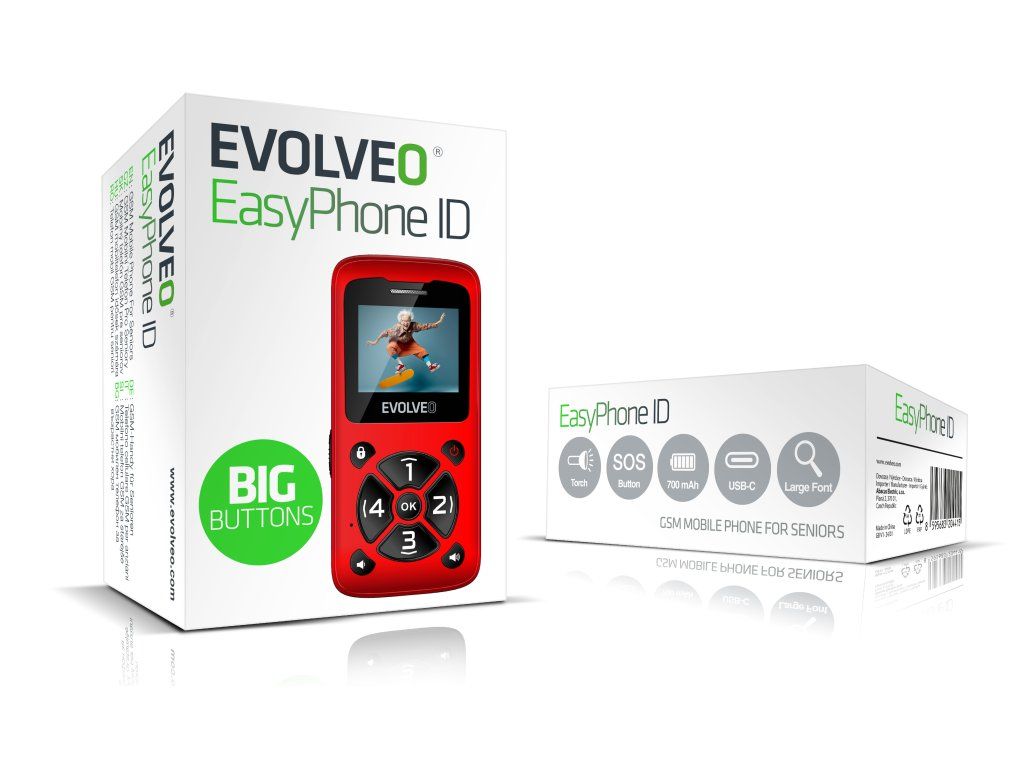 • EVOLVEO EasyPhone ID, mobilný telefón pre seniorov, čierna (PartNo EP-400-IDB )