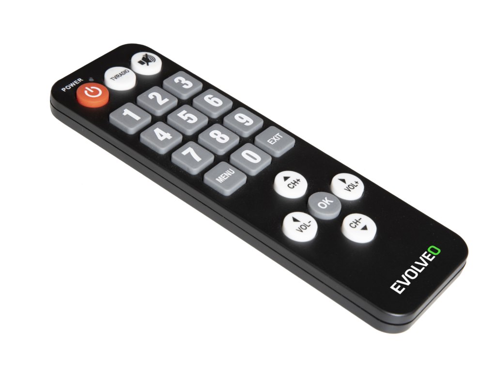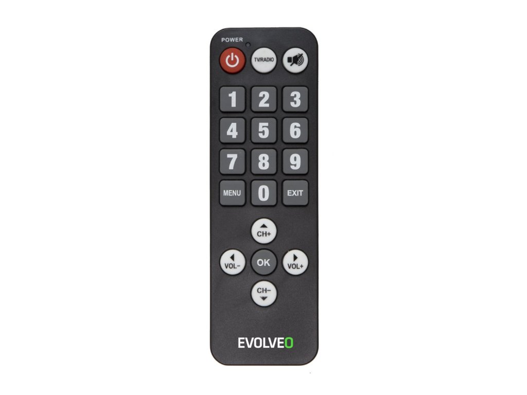 EVOLVEO seniorský dálkový ovladač pro Alpha T2 a Omega II Seniorský dálkový ovladač má velká písmena a je vybaven pouze základními funkcemi. Jeho používání je velmi jednoduché a díky velkým tlačítkům je vhodné hlavně pro seniory. Je určen pro přístroje Alpha T2 a Omega II a umožňuje současné používání s původním dálkovým ovladačem.Dodatočné parametre