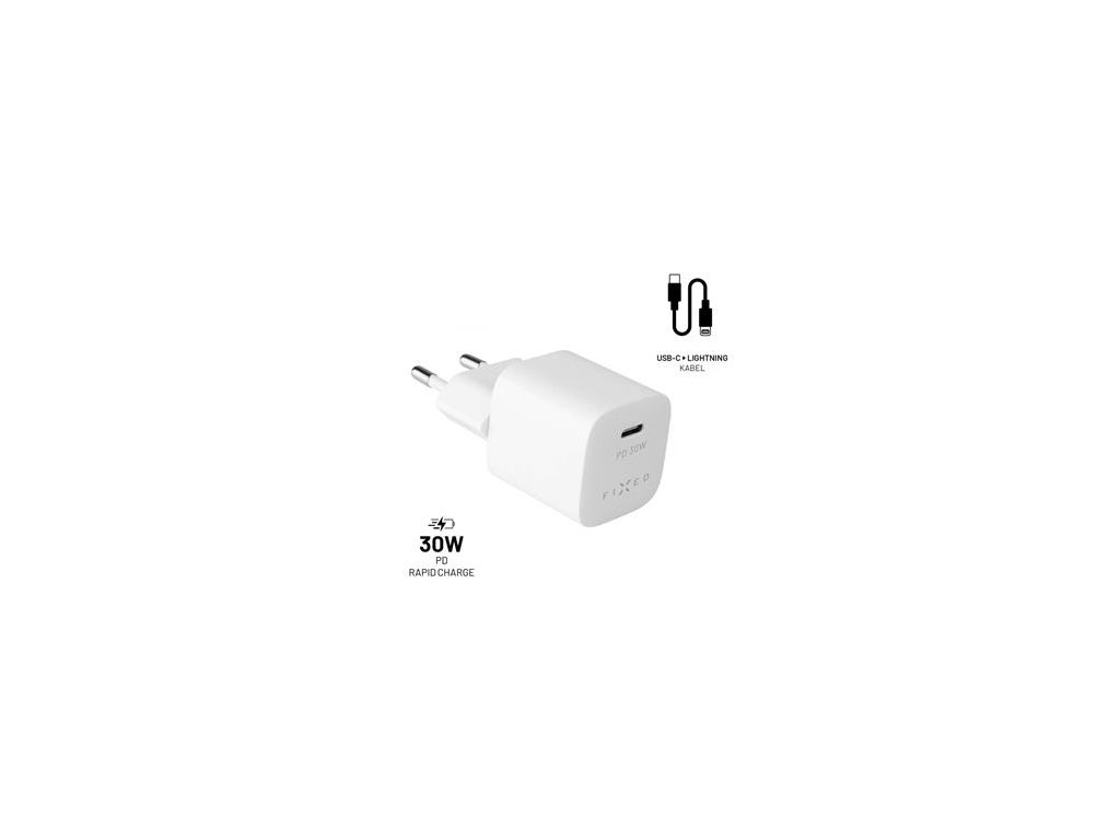 Popis produktu: Set miniaturní síťové rychlonabíječky nové generace FIXED Mini PD 30W a Lightning kabelu se postará o rychlé a bezpečné doplnění energie pro váš iPhone nebo iPad. Díky MFI certifikaci nabíječka zaručuje bezchybnou spolupráci se všemi Apple zařízeními s Lightning konektorem. Podpora rychlého nabíjení Power Delivery s výkonem 30W výrazně zkrátí dobu potřebnou pro nabití baterie. Tělo nabíječky je opravdu miniaturní, snadno se vejde i na hůře dostupné zásuvky například za nábytkem. Nabíjení je maximálně bezpečné chráněné několikanásobnou ochranou proti přepětí, přehřívání a zkratu. Kabel s konektory Lightning a USB/C s Liquid Silicone ochranným pláštěm a délkou 1 metr vyniká svou flexibilitou, odolností vůči poškození a překvapí na dotek jemným povrchem. S nabíjecím setem FIXED už nebudete mít strach, že vám dojde energie ve vašem Apple zařízení, ať už jste doma, v kanceláři nebo na cestách. Vlastnosti: - mini nabíjecí adaptér s podporou rychlého nabíjení - prémiový Liquid Silicone kabel s konektory Lightning/USB-C - USB-C port s podporu Power Delivery 3.0 - celkový výstup 30 W - vhodné pro Apple iPhone a iPad s Lightning konektorem - MFI certifikace (made for iPhone/iPad) - kompaktní rozměry - ochrana kabelu proti poškození a zalomení - určena pro síťové zásuvky EU - výrobek splňuje všechny zákonné a bezpečností normy pro ČR - rozměry 6,8 x 3 x 3 cm (se zástrčkou) Technické detaily: - Vstup: AC 100-240V, 50/60 Hz, 1A - Výstup: USB-C DC 5V/3A, 9V/3A, 12/2,5A, 15V/2A, 20V/1,5A 30W celkem - délka kabelu: 100 cmDodatočné parametre