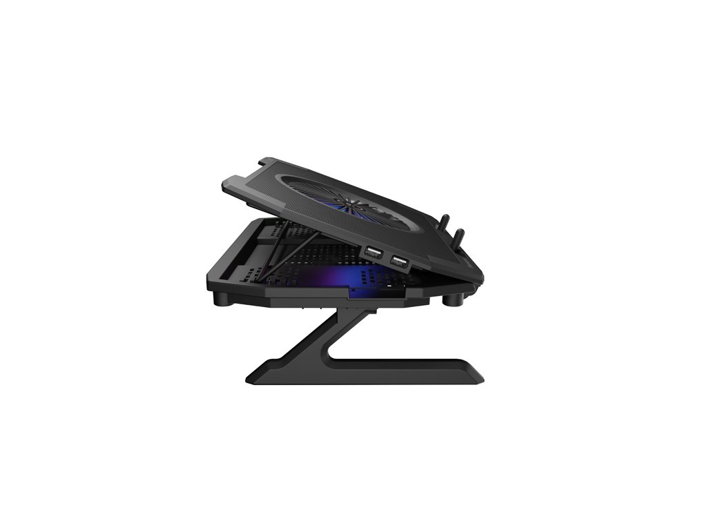 Genesis OXID 850 je chladicí stojan určený pro notebooky s úhlopříčkou až 17,3'', který pomáhá udržovat správnou teplotu zařízení během intenzivního hraní her. Jeho sklopné nožičky zvýší ergonomii práce a efektní RGB osvětlení hlavního ventilátoru bude dokonalým doplňkem každé herní stanice. Pět ventilátorů Stojan OXID 850 je vybaven účinným a bezpečným chladicím systémem založeným na čtyřech malých ventilátorech, které odvádějí teplo zpod notebooku, a jednom hlavním ventilátoru, který přivádí studený vzduch do notebooku. Správné umístění ventilátorů zajišťuje mimořádně účinné chlazení a třístupňová regulace rychlosti jejich otáčení účinně sníží teplotu notebooku i během nejzuřivějších bitev. Ergonomický design Stojan OXID 850 má šestistupňovou regulaci úhlu sklonu, která vám umožní dokonale přizpůsobit jeho nastavení vašim individuálním preferencím. Dopřejte si ten nejlepší herní zážitek a hrajte podle svých vlastních podmínek! Skládací nohy Oxid 850 je jedinečný stojan se sklopnými nožičkami, které umožňují rychlou změnu výšky notebooku. Díky tomu můžete mít ergonomicky optimální polohu při sezení s možností nastavení obrazovky na úroveň svého zraku. Předejdete tak bolesti krku a únavě očí po dlouhém hraní her. Zůstaňte v pohodlí s chladícím podstavcem Oxid 850! Efektní RGB podsvícení OXID 850 je nejen účinný, pokud jde o chlazení, ale má také působivý design. Díky intenzivnímu RGB podsvícení hlavního ventilátoru si můžete být jisti, že stojan dodá vaší pracovní stanici jedinečný herní charakter. Vestavěný rozbočovač USB Pro maximální funkčnost je OXID 850 vybaven dvěma porty USB 2.0. Jeden slouží k napájení stojanu a druhý vám umožní připojit další zařízení, abyste měli vždy po ruce to, co potřebujete. Vlastnosti: - Ergonomická vysoce výkonná chladicí podložka pro notebooky s úhlopříčkou až 17,3'' vybavená skládacími nožkami, které umožňují nastavit výšku podložky a současně zvyšují komfort používání. - Pět účinných ventilátorů s třístupňovou regulací rychlosti, které zajišťují plynulou práci notebooku. - Šest úrovní nastavení úhlu pro pohodlné pozorovací úhly. - Hlavní ventilátor má účinné RGB podsvícení. - Stojan je napájen jedním ze dvou vestavěných portů USB 2.0. Specifikace: Vyhrazená velikost notebooku: do 17.3 '' Rychlost otáček: 1100 - 2500 OTÁČEK ZA MINUTU Proudění vzduchu: 70 - 70 CFM Počet instalovaných ventilátorů: 5 Instalované ventilátory: 1x140 mm 4x 60 mm Nastavitelný úhel sklonu: 6 úrovní Podsvícení: Ano Typ ložiska: Sleeve Materiál: ABS, Kov Napájení: USB (5 V) Úroveň hluku: 56 dB Barva: Černá Délka: 400 mm Šířka: 270 mm Výška: 35 mm Hmotnost: 1400 gDodatočné parametre