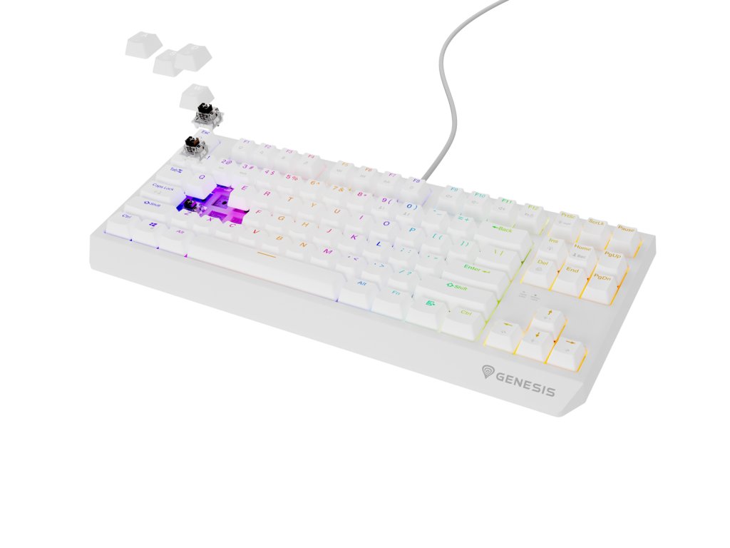 Genesis herná klávesnica THOR 230/TKL/RGB/Outemu Brown/Drôtová USB/US layout/Biela