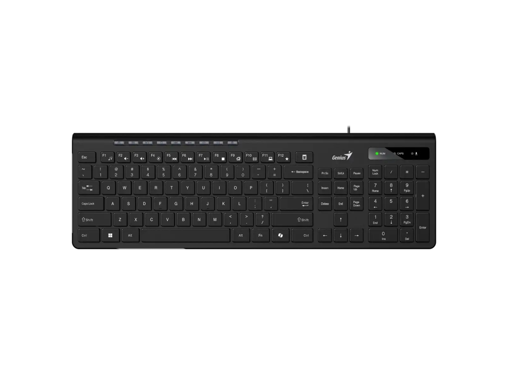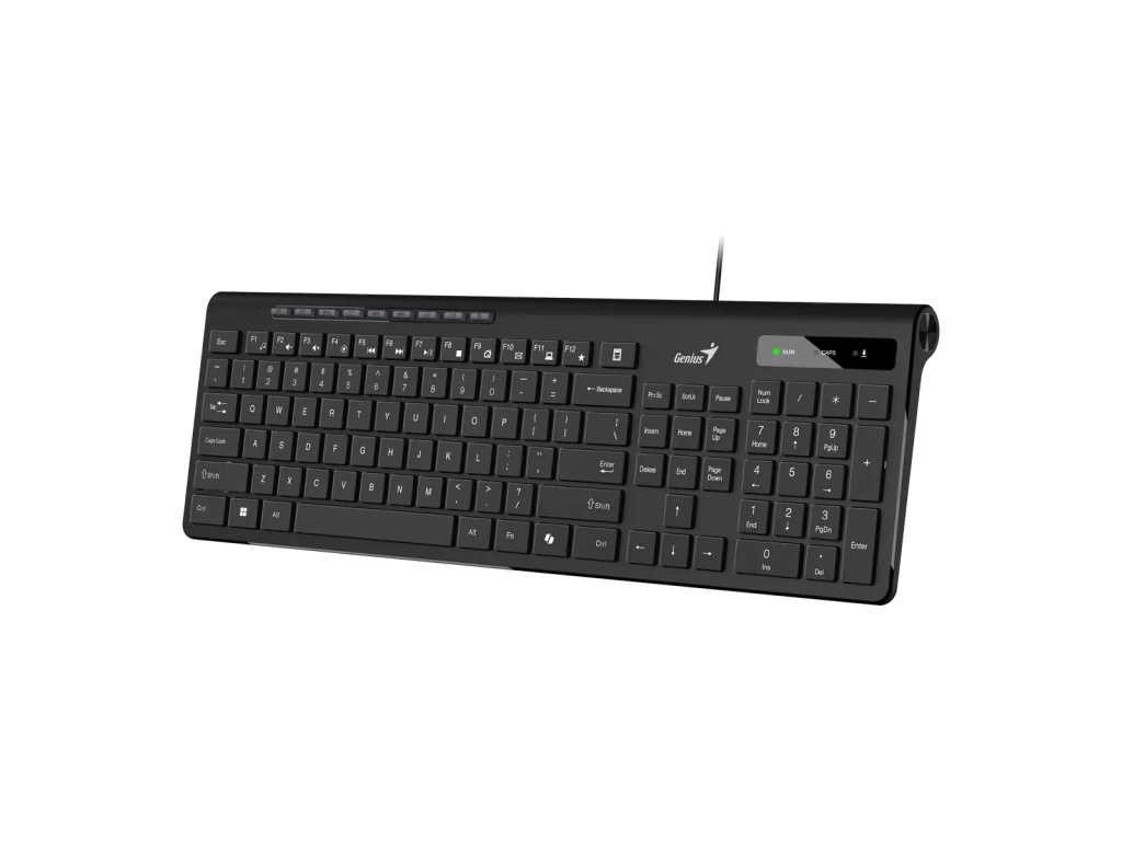 GENIUS SlimStar 230 II Slim multimediální klávesnice -Kombinace elegance a pohodlí -Multimediální klávesy pro rychlé akce a příkazy -Komfortní tiché čokoládové klávesy -Ergonomický základní design
