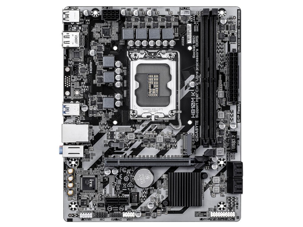 GIGABYTE H810M K Chipset: Intel® H810 Express Rozměrový formát: Micro ATX (226x185mm) Podpora pro procesory: Intel® Core™ Ultra Patice procesoru: LGA1851 Paměť: * 2x DIMM patice podporující až 128GB, DDR5 6400/5600 MT/s paměťové moduly * dvoukanálová architektura paměti * podpora paměťových modulů Extreme Memory Profile (XMP) Grafické výstupy: * 1x HDMI port s maximálním rozlišením 4096x2160 při 60 Hz - Podpora pro verzi HDMI 2.1 a HDCP 2.3 * 1x DisplayPort s maximálním rozlišením 3840x2160 při 60 Hz - Podpora pro verzi DP 2.1 Zvuková karta: * Kodek Realtek® Audio * High Definition Audio * 2/4/5.1/7.1 kanál Ethernet: Realtek® GbE LAN Rozšiřující sloty: * 1x PCI Express x16 podporuje PCIe 4.0 a běží na x16 (PCIEX16) * 1x PCI Express x1 podporuje PCIe 3.0 a běží na x1 (PCIEX1) Úložný prostor: celkem podporuje 1 slot M.2 a 4 porty SATA 6Gb/s * 1x M.2, M key typ 2280 - podpora PCIe 4.0 x4/x2 SSD * 4x port SATA 6Gb/s RAID řadič: podpora RAID 0/1/5/10 pro úložná zařízení SATA USB: Zadní USB (celkem 6 portů) * 2x USB 3.2 Gen 1 * 4x USB 2.0/1.1 Přední USB (celkem 4 porty) * 1x USB 3.2 Gen 1 header - podpora dalšího 1 USB 3.2 Gen 1 * 1x USB 2.0/1.1 header - podpora dalšího 1 USB 2.0/1.1 Porty na zadním panelu: * 2x USB 3.2 Gen 1 * 4x USB 2.0/1.1 * 1x HDMI * 1x DisplayPort * 1x RJ-45 * 3x audio jack Interní porty: Napájení * 1x 24-pin ATX hlavní napájecí konektor * 1x 8-pin ATX 12V napájecí konektor Související s ventilátorem a chlazením * 1x CPU fan header * 1x system fan header Související s úložištěm * 1x M.2 slot (Key M) * 4x SATA 6Gb/s port USB * 1x USB 3.2 Gen 1 header * 1x USB 2.0/1.1 header Ostatní * 1x front panel header * 1x front panel audio header * 1x Trusted Platform Module header (pouze pro modul GC-TPM2.0 SPI V2) * 1x serial port header * 1x Clear CMOS jumper BIOS: 1x 256Mb flash, AMI UEFI BIOS, PnP 1.0a, DMI 2.7, WfM 2.0, SM BIOS 2.7, ACPI 5.0 Odkaz na stránku výrobce: https://www.gigabyte.com/Motherboard/H810M-K#kfDodatočné parametre