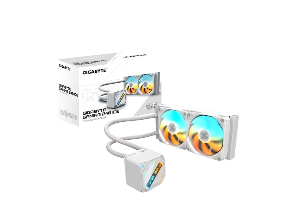 GIGABYTE Vodní chladič GAMING 240 ICE, 2x120mm, ARGB, LGA1851, AM5, bílá