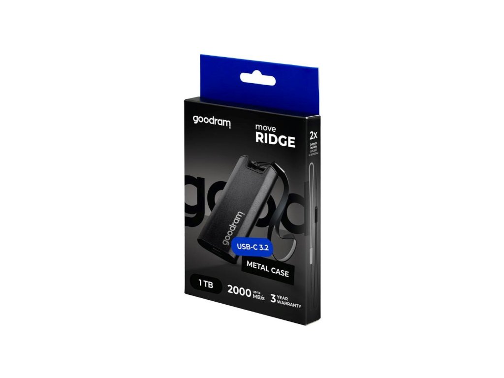 GOODRAM externí SSD Move Ridge 1TB, USB-C 3.2 Gen2x2, (R:2000/W:2000MB/s), černá