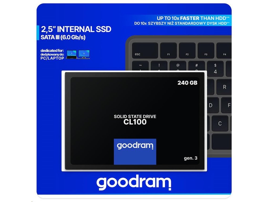 GOODRAM SSD CL100 Gen.3 240 GB SATA III 7 mm, 2,5" (R: 520 MB/s; W 400 MB/s)