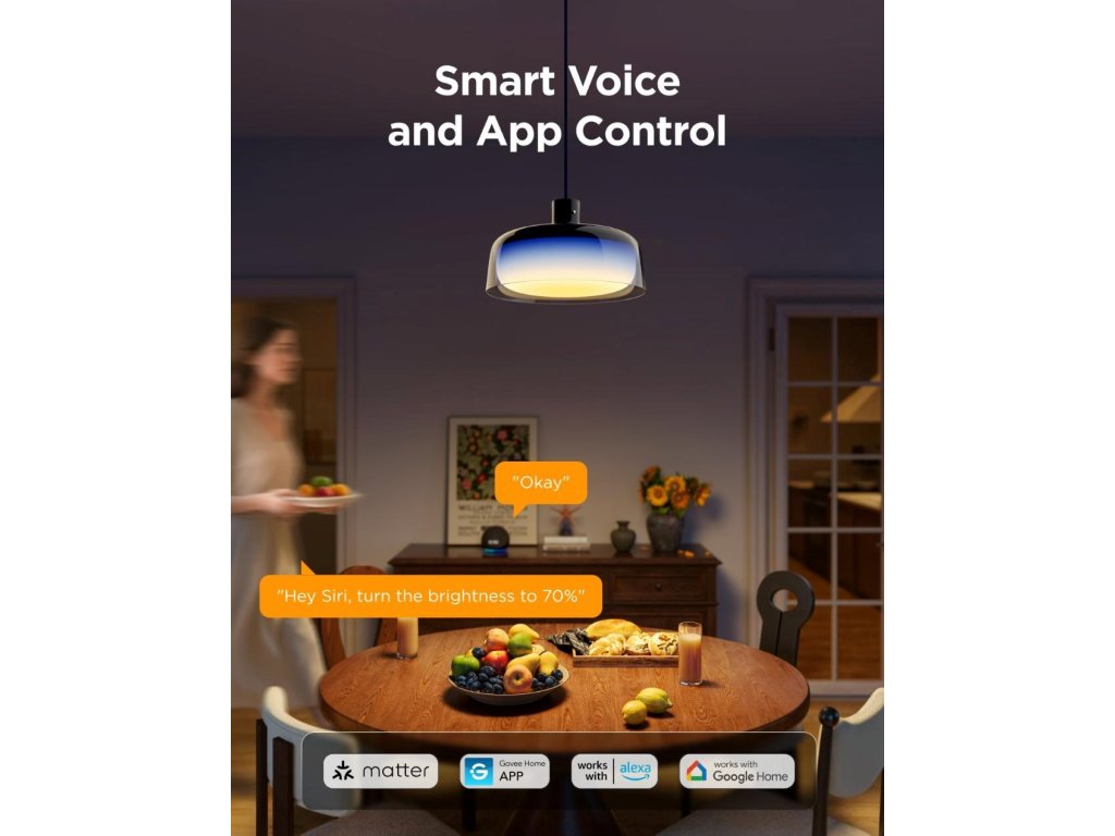- Moderné závesné svietidlo Govee ponúka kombináciu dizajnu a funkčnosti pre každý interiér.