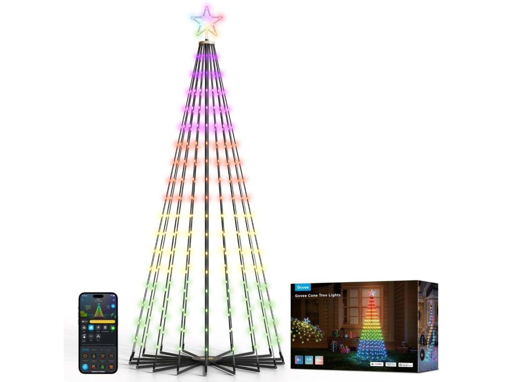 Strom Govee Star Tree vás ohromí svojou impozantnou výškou 1,82 metra a priemerom základne 80 cm. Vďaka týmto rozmerom bude dominovať každému priestoru, či už ho umiestnite do interiéru ako štýlovú alternatívu vianočného stromčeka, alebo ho použijete ako výraznú vonkajšiu vianočnú dekoráciu.