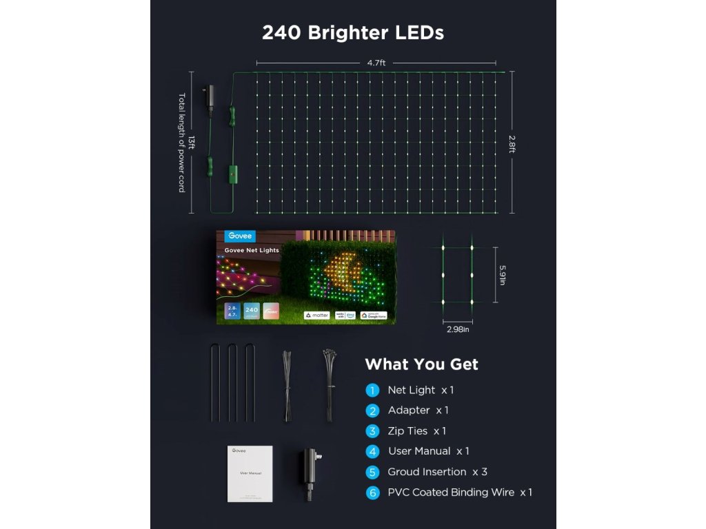 Govee RGBIC venkovní světelná síť - 1,43 x 0,85m Matter
