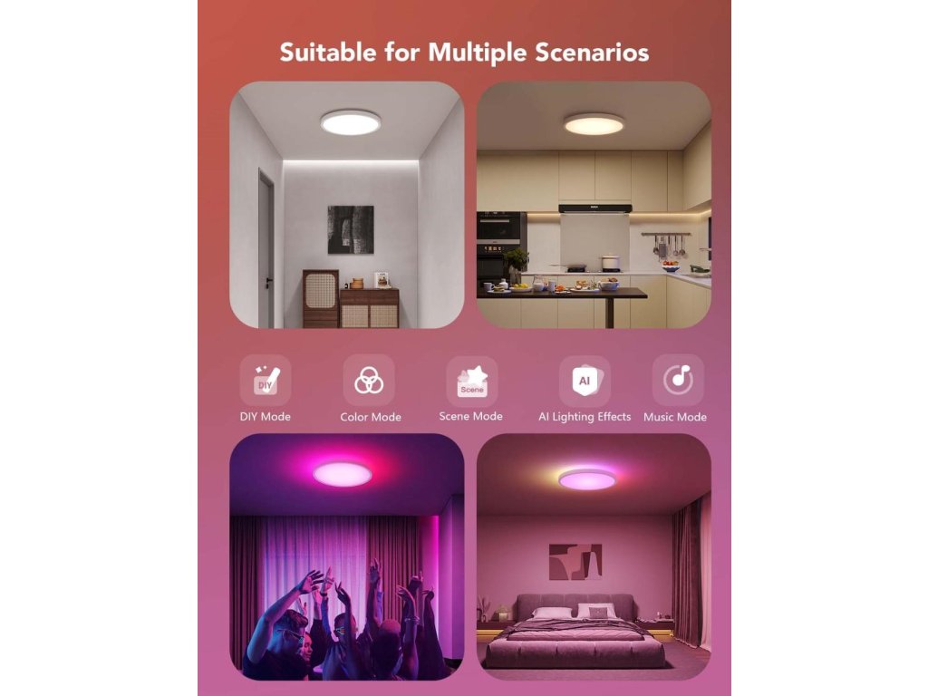 Objavte viac ako 70 inteligentných scén pre dokonalé osvetlenie vášho priestoru! Duálne stropné svietidlo Govee ponúka v aplikácii výkonný režim DIY, ktorý vám umožní vytvoriť si osvetlenie podľa vlastných predstáv. Ľahko si vytvoríte atmosféru, ktorá sa hodí na akúkoľvek príležitosť a v akomkoľvek štýle. Navyše vďaka funkcii Dreamview synchronizujte viacero svetiel Govee na rovnakú farbu, aby ste dosiahli skvelý efekt. Oživte svoj domov so zariadením Govee!