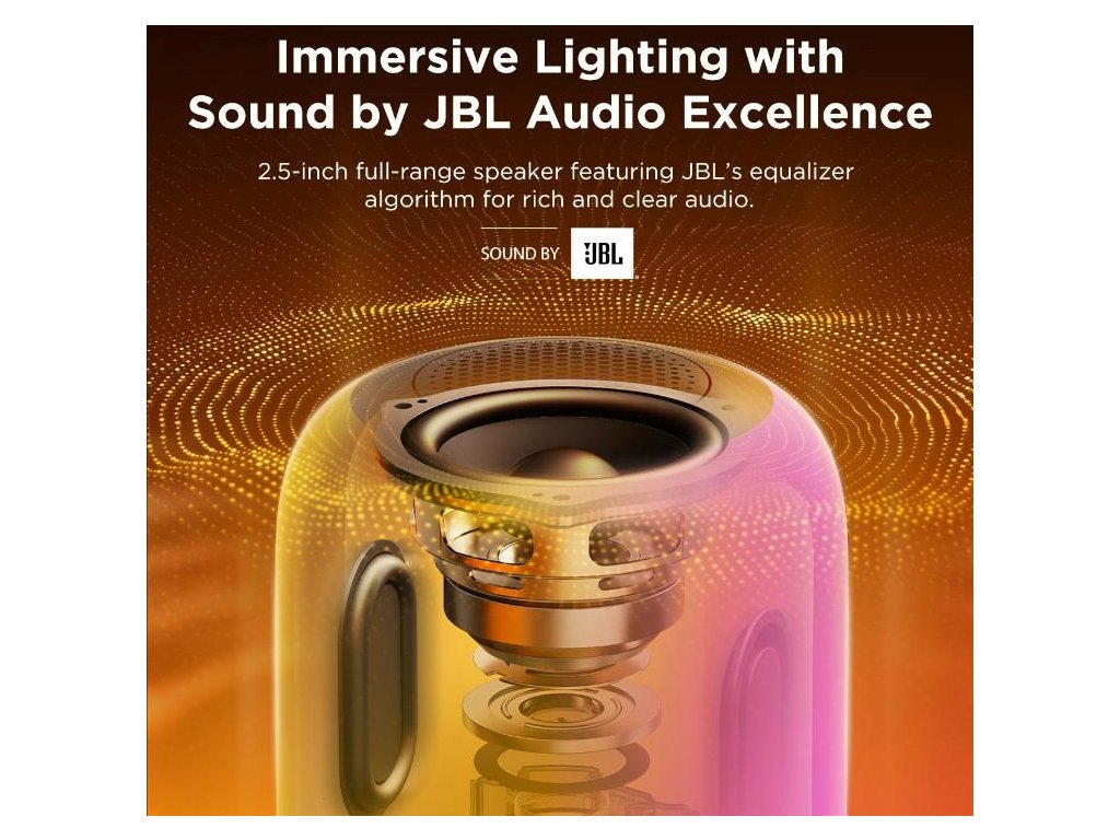 - Pohlcujúci zážitok: Kombinuje živé RGBICWW osvetlenie s prémiovým zvukom od JBL.