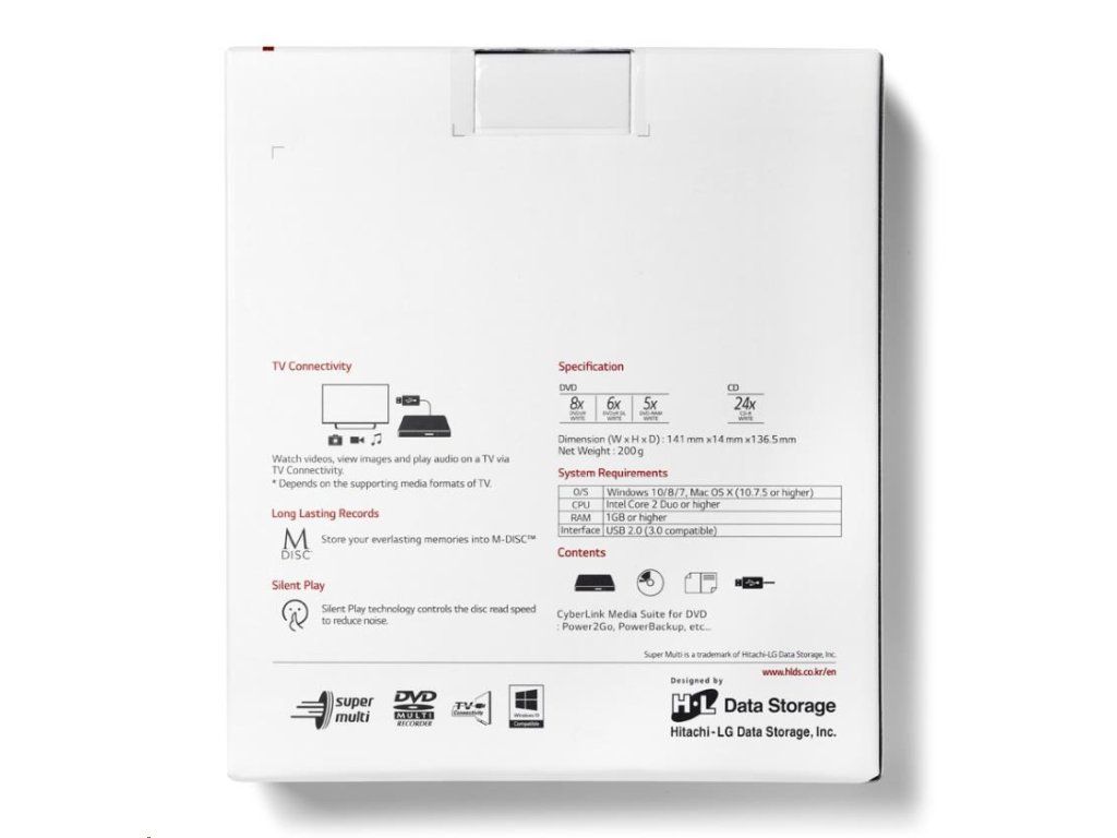 HITACHI LG - externá mechanika DVD-W/CD-RW/DVD±R/±RW/RAM GP57ES40, Slim, Silver, box+SW