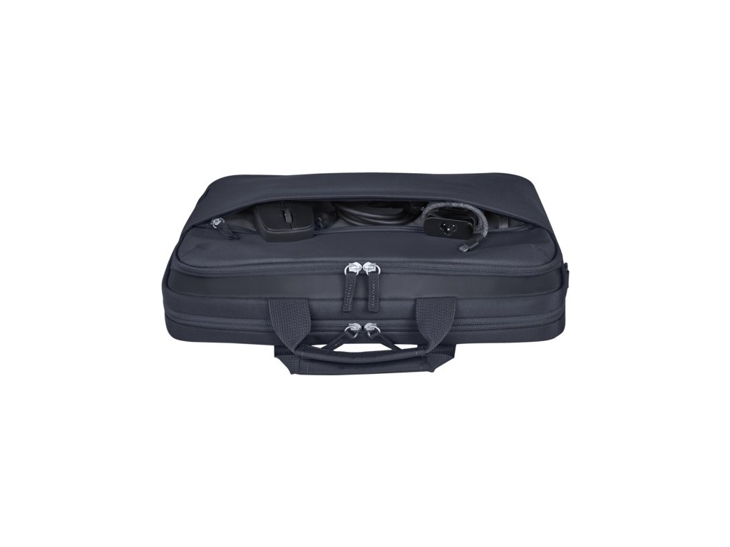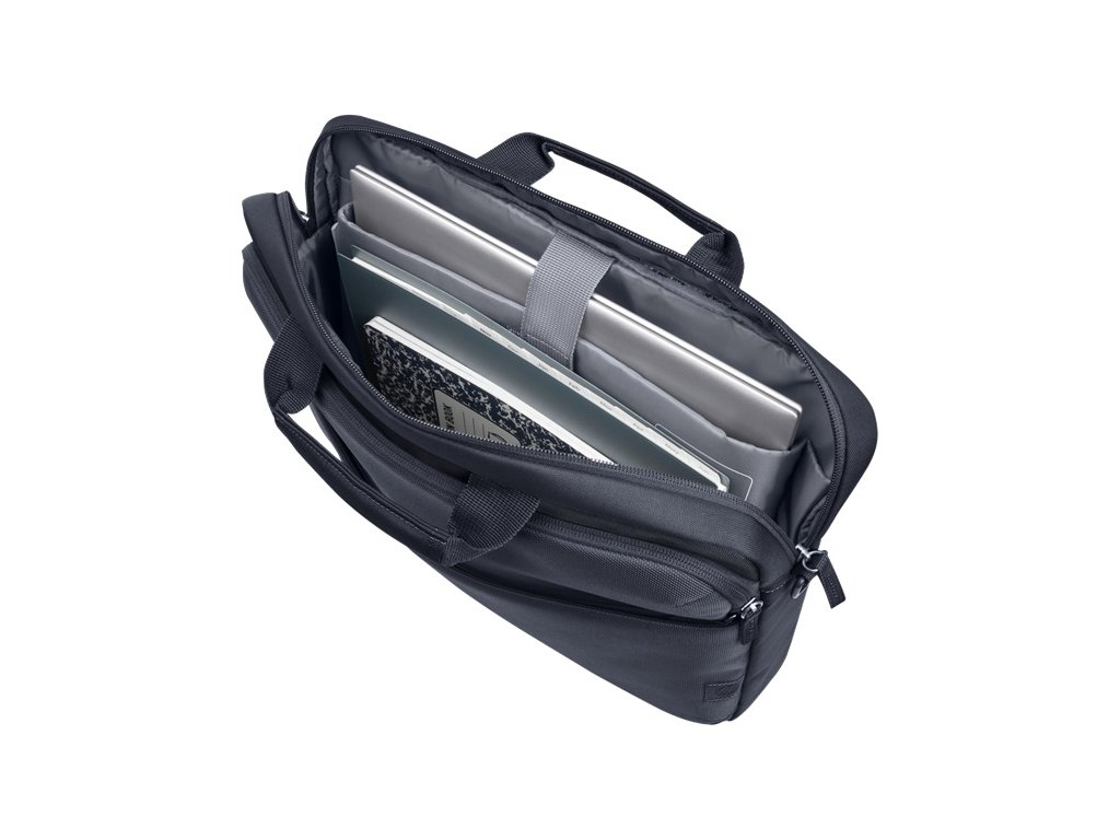 Brašna na notebook HP Everyday 16” Odolná taška na 16palcový notebook, ve které budete mít počítač i příslušenství celý den chráněné a přehledně uspořádané. Prostorná taška vyrobená z recyklovaných materiálů, která vás nenechá na holičkách, ať vyrazíte kamkoli. Technické specifikace Barva: šedá (A gray odyssey) Hmotnost: 510 g Rozměry balení: 405 x 60 x 305 mm Objem: 13 l Systém uzavírání: zip Nosný popruh: polstrovaný, odnímatelný, ramenní, kufrový Přihrádky: notebook, dokumenty, hlavní oddíl, příslušenství Vnější kapsy: 1x rychle přístupná kapsa, příslušenství Vnitřní kapsy: polstrovaná kapsa na notebook, příslušenství, poutko na pero Cestovní funkce: průchod pro rukojeť, polstrovaný zadní panel Funkce zabezpečení: polstrovaná kapsa na notebook Speciální funkce: voděodolnost Údržba: Otřete čistým, vlhkým hadříkem a nechte uschnout na vzduchu. Vnější materiál: polyester 600D (60 % podíl recyklovaných plastů PCR (Post-Consumer Recycled)) Materiál vnitřní podšívky: 100% polyester Výplňový materiál: pěna EPE Obsah balení: brašna, popruhy Záruka: 36 měs.Dodatočné parametre