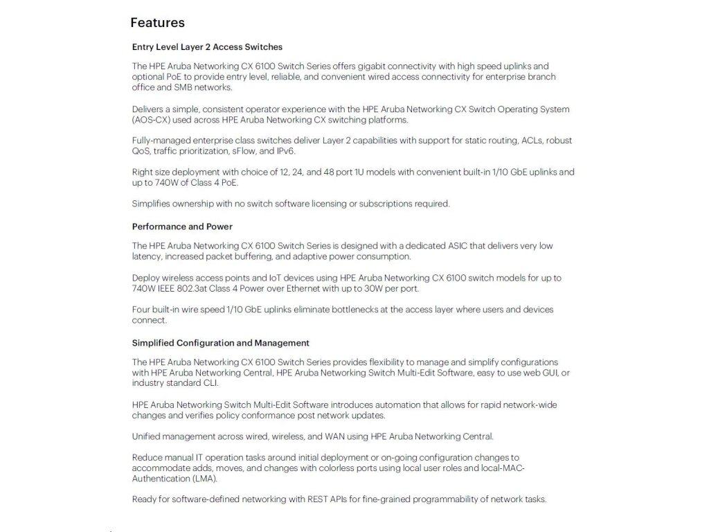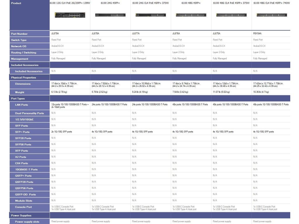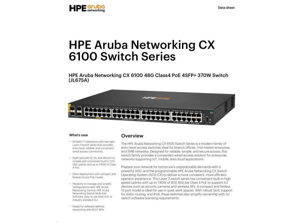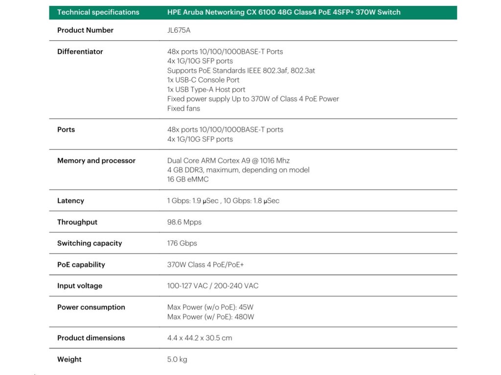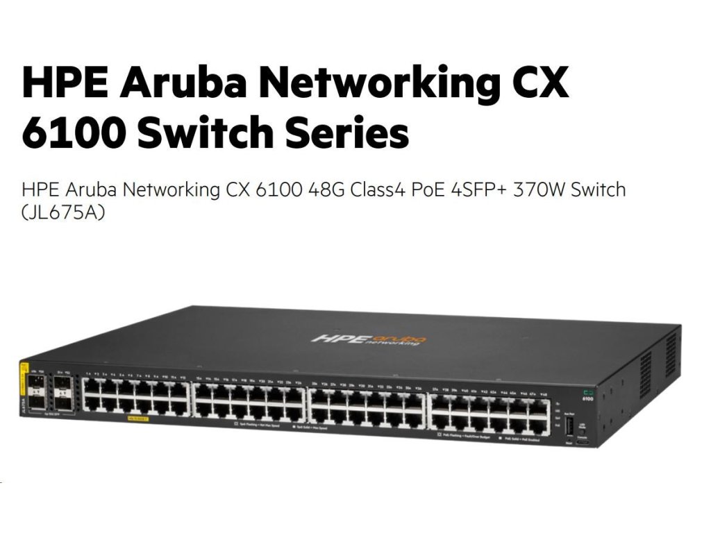 HPE Aruba Networking CX 6100 48G Class4 PoE 4SFP+ 370W Switch RENEW JL675A