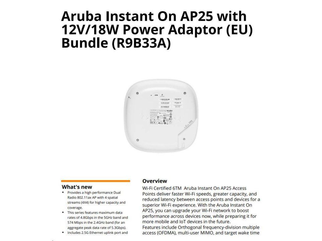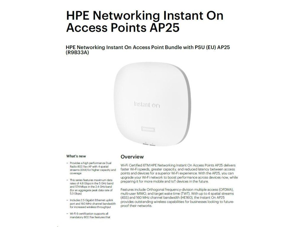 HPE Networking Instant On Access Point Bundle with PSU (EU) AP25 (R9B33A)