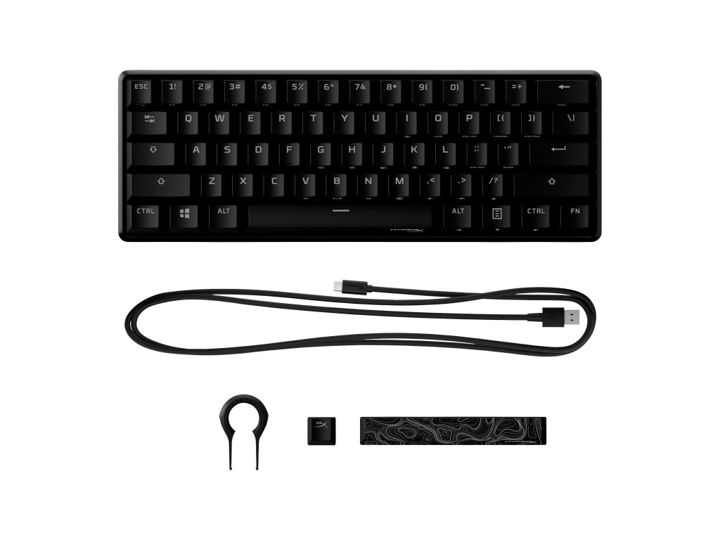 | Obsah balenia | Mechanická herná klávesnica, odpojiteľný kábel USB, vyberač klávesov HyperX, 1 kláves ESC v dizajne HyperX, 1 medzerník v dizajne HyperX, Stručná príručka |