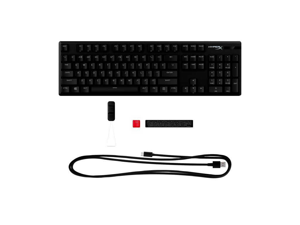 | Obsah balenia | Mechanická herná klávesnica, odpojiteľný kábel USB, vyťahovač klávesov HyperX, 1 kláves ESC s dizajnom HyperX, 1 medzerník s dizajnom HyperX, Stručná úvodná príručka |