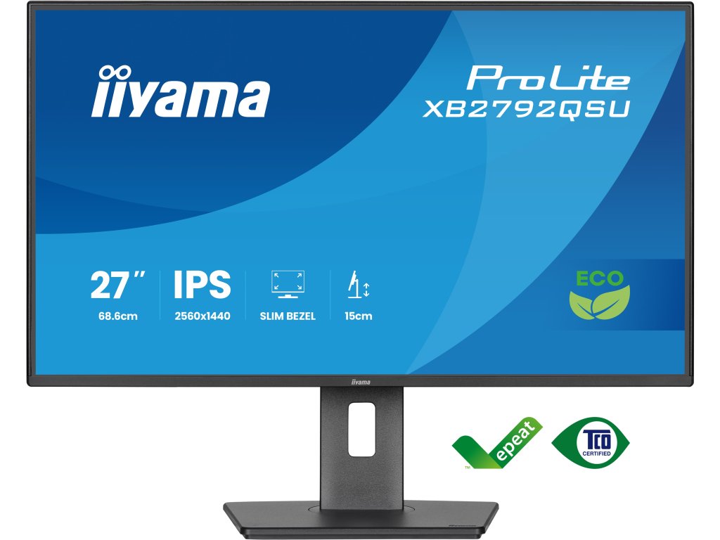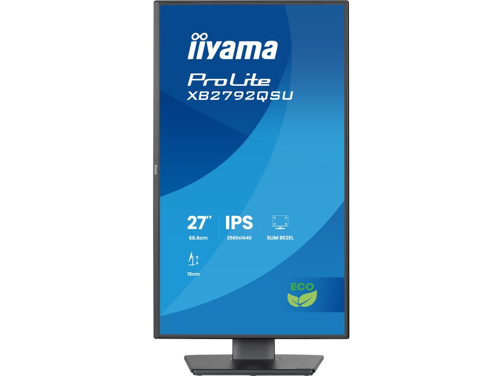 ProLite XB2792QSU-B1 , *Šetřete elektřinu, udržujte ,výkon zobrazení *Lepší volba – certifikováno *Pečujte o své oči Typ obrazovky: ,IPS Úhlopříčka [palce]: ,27 Rozlišení: ,2560 x 1440 Rozteč bodu [mm]: ,0.233 Obnovovací frekvence [Hz]: ,120 Poměr stran: ,16:9 Povrch displeje: ,Matný Jas [cd/m2]: ,350 Kontrast: ,1 500:1 Odezva [ms]: ,3 Pozorovací úhly (Horizontál/Vertikál): ,178/178 Počet barev: ,16,7 mil Reproduktory: ,2x 2w Konektory: , *1x HDMI 2.0 *1x DisplayPort 1.2 *2x USB HUB , (v. 3.2 Gen 1 (5Gbps, 4.5W)) *1x Konektor pro sluchátka Napájení: ,Interní Spotřeba [W]: ,12 Stand By režim [W]: ,0,5 Třída energetické náročnosti: ,B Montáž na zeď: ,VESA 100 x 100 Naklápění monitoru: , *Výškově nastavitelné: 150mm *Otočný (Pivot): 90° *Úhel otočení: 90°, , 45° doleva, 45° doprava *Úhel náklonu: 23° nahoru, 5° dolů Barva: ,Černá Rozměry (se stojanem, ŠxVxH mm): ,615.5 x 546 x 209.5 Rozměry (bez stojanu, ŠxVxH mm): ,615.5 x 403.5 x 209.5 Hmotnost [kg]: ,5,5 Obsah balení: , *1x napájecí kabel *1x USB kabel *1x HDMI kabel Záruka: ,3 Roky Stránky výrobce: ,https://iiyama.com/cz_cs/produkty/prolite-xb2792qsu-b1/?Dodatočné parametre