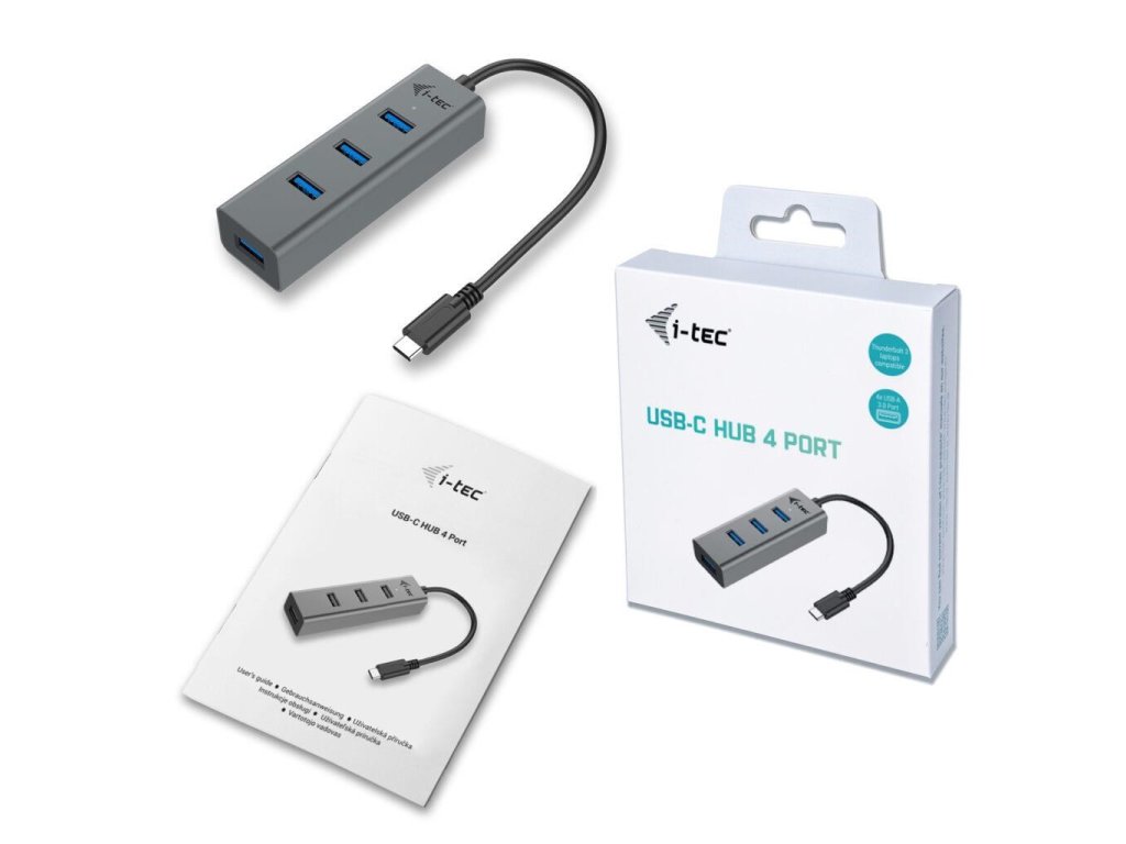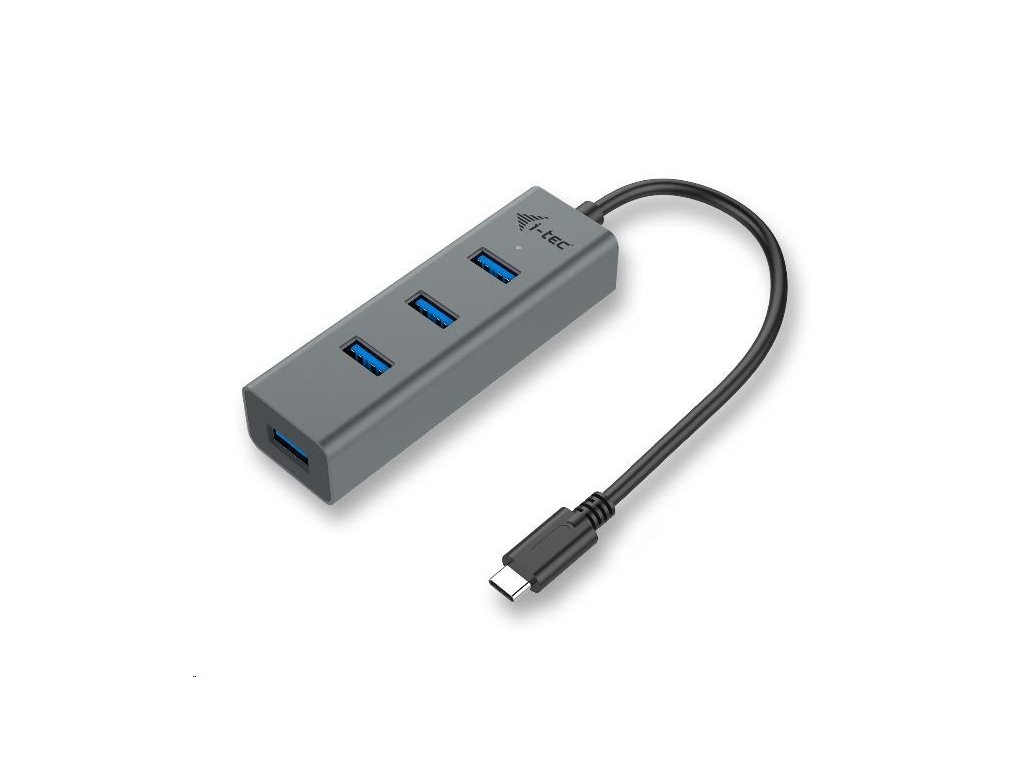 i-tec USB-C Metal 4-portový HUB, 4x USB 3.0 port na pripojenie zariadenia USB-A k novému konektoru USB-C, pre notebook tablet smartfón PC s konektorom USB-C, kompatibilný s Thunderbolt 3, Windows, Mac OS, Android, Chrome