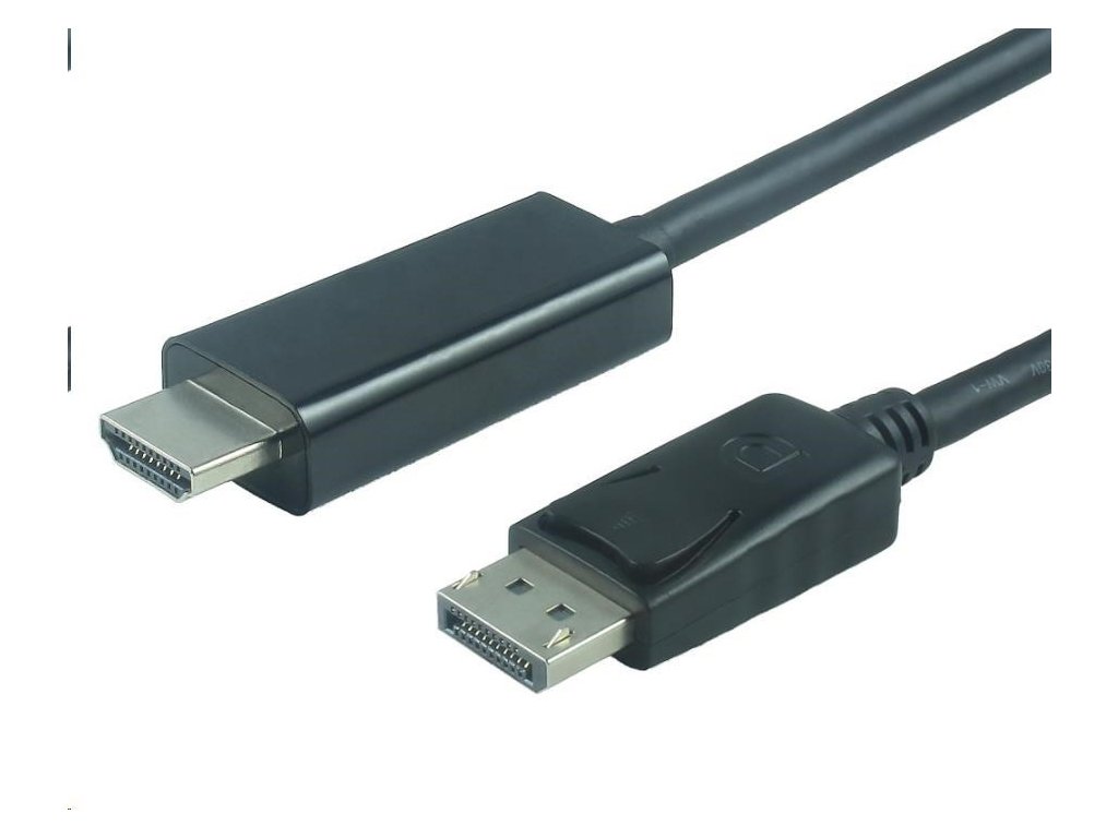 Kábel DisplayPort - HDMI funguje jednosmerne, kábel obsahuje elektronický prevodník DP -> HDMI, ktorý dokáže konvertovať signál len v smere DP -> HDMI.