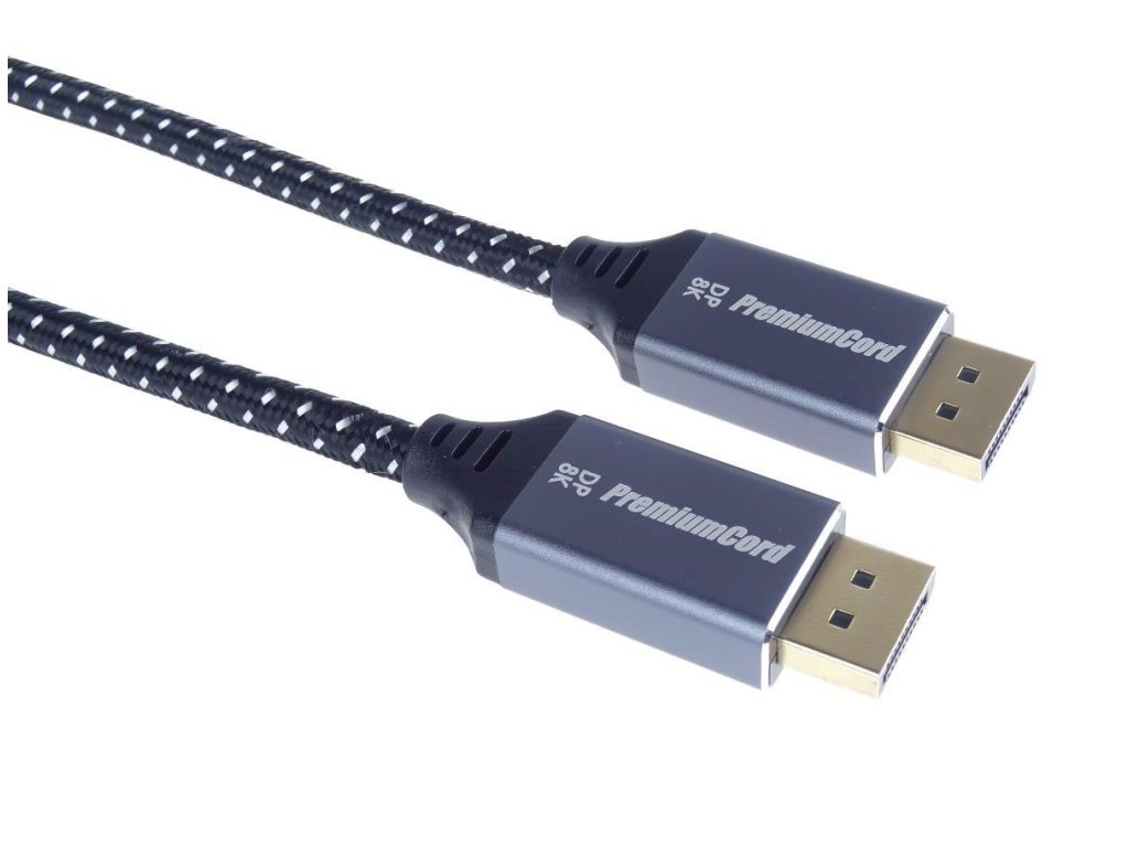 PremiumCord DisplayPort 1.4 pripojovacie káble M/M pre rozlíšenie 8K, kovové krytky a pozlátené konektory, 1 m