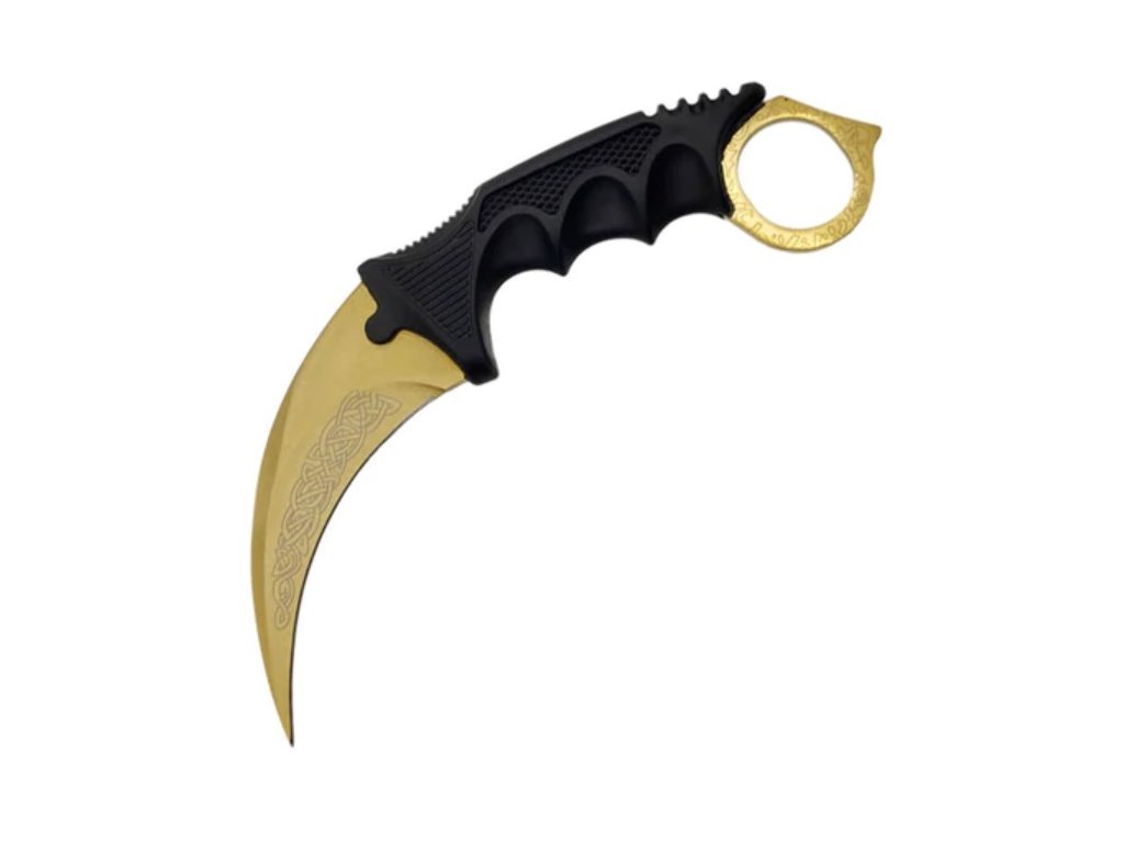 Koncom roka 2016 bolo týchto karambitov predaných cez 2 milióny kusov! Hrubá, pevná a ostrá čepeľ. Rukoväť je z tvrdeného ABS plastu a je anatomicky tvarovaná. Dodávaný spolu s púzdrom ktoré je opatrené paracord lankom na zavesenie.