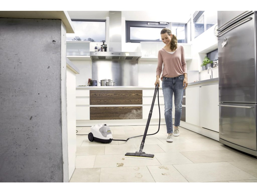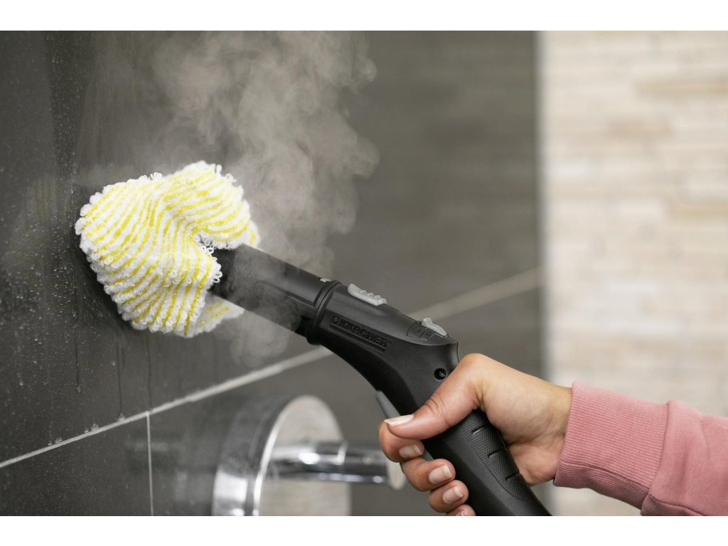 Parný čistič SC 4 EasyFix ponúka vysokú úroveň komfortu a môže sa chváliť integrovanou priehradkou na kábel, priehradkou na príslušenstvo a parkovacou polohou pre podlahovú hubicu. Podlahová hubica EasyFix zaručuje vynikajúcu ergonómiu vďaka flexibilnému klbu, zatiaľ čo lamelová technológia zabezpečuje žiarivo čisté výsledky. S praktickým systémom háčikov a slučiek je možné podlahovú utierku z mikrovlákna rýchlo a ľahko pripevniť k podlahovej hubici a opäť odňať, bez toho aby prišla do kontaktu so špinou. Pomocou dvojstupňovej regulácie pary je možné intenzitu pary prispôsobiť povrchu a nečistotám. Vďaka širokému príslušenstvu sa dlaždice, varné dosky, odsávače pár a dokonca aj tie najmenšie škáry rýchlo rozžiaria ako nové - odstránite aj tie najodolnejšie nečistoty. Trvalo plniteľná a vyberateľná nádrž na vodu umožňuje neprerušené čistenie. SC 4 EasyFix čistí bez použitia chemikálií a je možné ho prakticky použiť kdekoľvek v domácnosti. Dôkladné čistenie parným čističom Kärcher odstráni 99,999 % koronavírusov* a 99,99 % všetkých bežných domácich baktérií** z typických tvrdých povrchov v domácnosti.