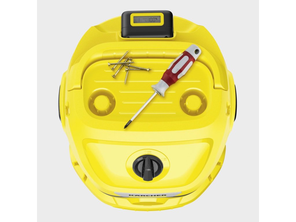 Zabudnite na neustále hľadanie voľnej elektrickej zásuvky a obmedzovanie sa krátkym prívodným káblom. Akumulátorový viacúčelový vysávač Kärcher WD 2-18 Battery poskytuje plnohodnotný sací výkon, na aký ste zvyknutí pri sieťových zariadeniach, no s absolútnou voľnosťou pohybu. Je to ideálny pomocník na upratovanie interiéru áut, prístreškov, garáží, dielní alebo na rýchle vyčistenie pivnice po majstrovaní.