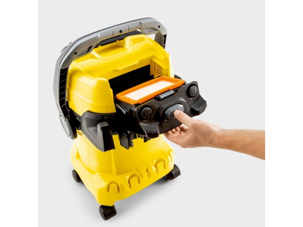 Sú situácie, kedy klasické vysávanie nie je možné. Preto je Kärcher WD 5 vybavený aj silným fukárom. Jednoduchým prepojením sacej hadice do vyfukovacieho otvoru na zadnej strane získate nástroj, s ktorým ľahko odfúknete napadané lístie zo štrkového záhonu alebo vyčistíte priestor pod záhradným nábytkom.