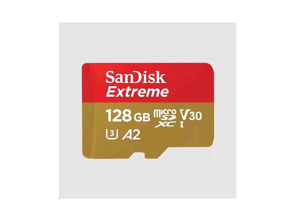 Karta SanDisk micro SDXC 128 GB Extreme (190 MB/s Class 10, UHS-I U3 V30) + adaptér