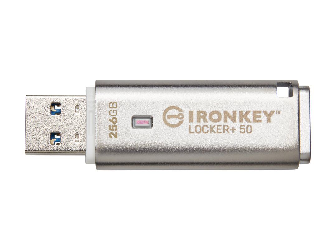 USB flash disky Kingston IronKey Locker+ 50 poskytují zabezpečení na spotřebitelské úrovni s hardwarovým šifrováním AES v režimu XTS včetně zabezpečení proti BadUSB s digitálně podepsaným firmwarem a zabezpečení proti útokům hrubou silou. Řada LP50 je také kompatibilní s TAA. Řada LP50 nyní podporuje volbu více hesel (správce a uživatele) s režimy složitého přístupového hesla nebo fráze. Režim složitého hesla umožňuje tvorbu hesel v délce 6–16 znaků s využitím 3 ze 4 znakových sad. Režim přístupového hesla fráze umožňuje využití číselného kódu PIN, věty, seznamu slov nebo zapamatovatelného citátu v délce 10 až 64 znaků. Správce může povolit heslo uživatele nebo resetovat heslo uživatele pro obnovení přístupu k datům. Pro usnadnění zadávání hesla lze aktivovat symbol „oka“, který odkryje zadávané heslo, čímž se omezí překlepy vedoucí k neúspěšným pokusům o přihlášení. Ochrana proti útokům hrubou silou zablokuje uživatele po 10 neplatných heslech zadaných v řadě a šifrovaně vymaže disk, pokud je heslo správce zadáno nesprávně 10× za sebou. Vestavěná virtuální klávesnice navíc chrání hesla před keyloggery nebo screenloggery. USB flash disk Locker+ 50 je navržen pro maximální komfort s malým kovovým pouzdrem a vestavěným očkem pro kroužek na klíče, abyste si mohli vzít data kamkoli. Řada LP50 nabízí rovněž volitelné zálohování USBtoCloud (poskytované ClevX®) pro přístup k datům na disku z vašeho osobního cloudového úložiště prostřednictvím služeb Google Drive™, OneDrive (Microsoft®), Amazon Cloud Drive, Dropbox™ a Box. USB flash disky LP50 je schopen každý snadno nastavit a používat – není nutné instalovat žádnou aplikaci, veškerý potřebný software a zabezpečení jsou již přítomny na disku. Disky pracují v operačních systémech Windows® i macOS®, takže mohou uživatelé přistupovat k datům z více systémů.Šifrování: Hardwarové XTS-AES pro ochranu dat s automatickým USBtoCloud® zálohováním