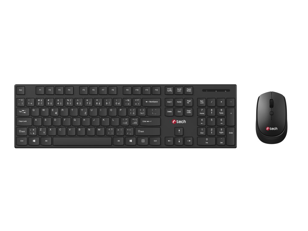 Klávesnice C-TECH WLKMC-03, bezdrátový combo set s myší, černý, USB, CZ/SK
