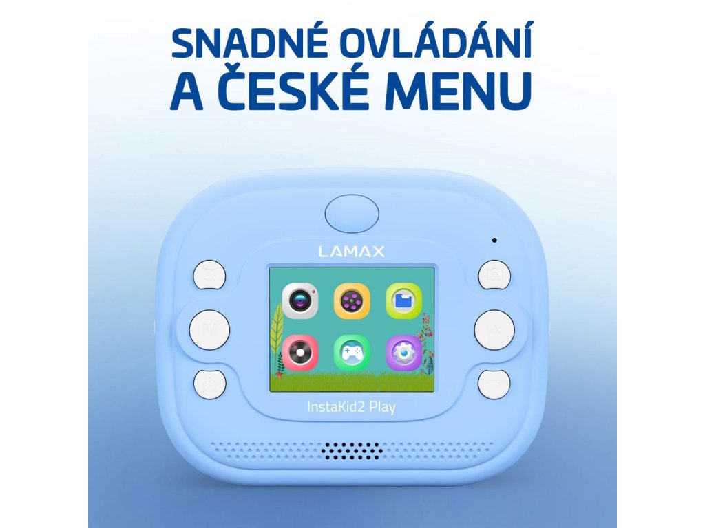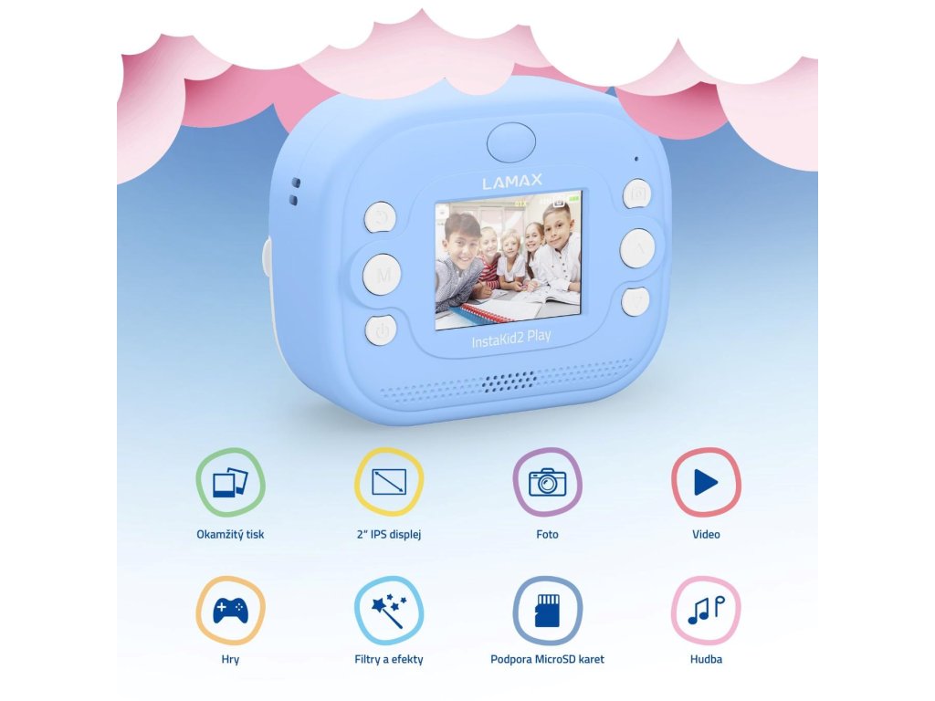 LAMAX InstaKid2 Play je foťák, ktorý nestráca čas. Deti si s ním jednoducho zaznamenajú každý dôležitý moment a počas sekundy ho majú v ruke. Čiernobiele snímky sa môžu premeniť na farebné spomienky pomocou fixiek, ktoré sú súčasťou balenia – stačí ich len vyfarbiť, pridať do vlastného albumu alebo nimi potešiť napríklad babičku. Vďaka jednoduchému ovládaniu, dvom ruličkám v balení (vrátane samolepiacej), originálnemu dizajnu a výkonnej kamere so 48 Mpx a FullHD videom, sa foťák stane nepostrádateľným spoločníkom na výlety, oslavy aj tvorivá popoludní s kamarátmi. Obľúbia si ho aj staršie deti, ktoré si môžu svoje snímky aj videá ukladať na microSD kartu a uchovať si tak svoje prvé filmárske pokusy. Na výber je ružová alebo modrá varianta a nechýba ani praktická šnúrka na krk, aby mali deti foťák stále po ruke. A keď práve nefotí? Zábavu zaistí päť hier priamo vo fotoaparáte. Tento foťáčik totiž nie je len o spomienkach, je tiež o radosti, sebavyjadrení a fantázii.