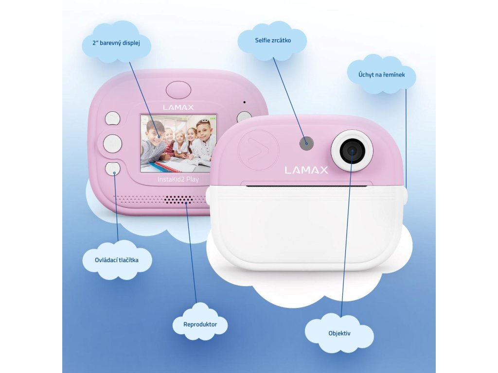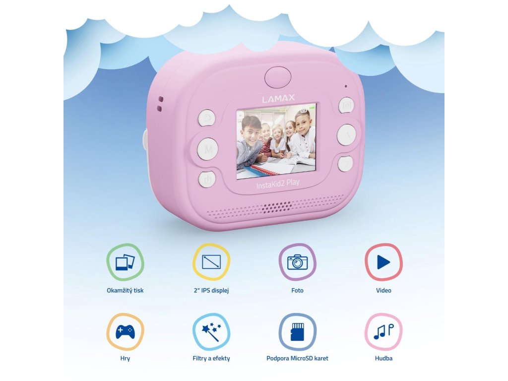 LAMAX InstaKid2 Play je foťák, ktorý nestráca čas. Deti si s ním jednoducho zaznamenajú každý dôležitý moment a počas sekundy ho majú v ruke. Čiernobiele snímky sa môžu premeniť na farebné spomienky pomocou fixiek, ktoré sú súčasťou balenia – stačí ich len vyfarbiť, pridať do vlastného albumu alebo nimi potešiť napríklad babičku. Vďaka jednoduchému ovládaniu, dvom ruličkám v balení (vrátane samolepiacej), originálnemu dizajnu a výkonnej kamere so 48 Mpx a FullHD videom, sa foťák stane nepostrádateľným spoločníkom na výlety, oslavy aj tvorivá popoludní s kamarátmi. Obľúbia si ho aj staršie deti, ktoré si môžu svoje snímky aj videá ukladať na microSD kartu a uchovať si tak svoje prvé filmárske pokusy. Na výber je ružová alebo modrá varianta a nechýba ani praktická šnúrka na krk, aby mali deti foťák stále po ruke. A keď práve nefotí? Zábavu zaistí päť hier priamo vo fotoaparáte. Tento foťáčik totiž nie je len o spomienkach, je tiež o radosti, sebavyjadrení a fantázii.