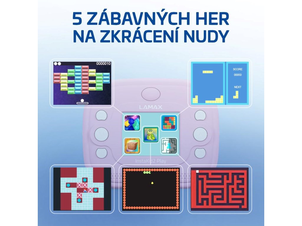 Keď si deti budú chcieť od fotenia oddýchnuť, môžu si zahrať jednu z piatich hier priamo vo svojom fotoaparáte.