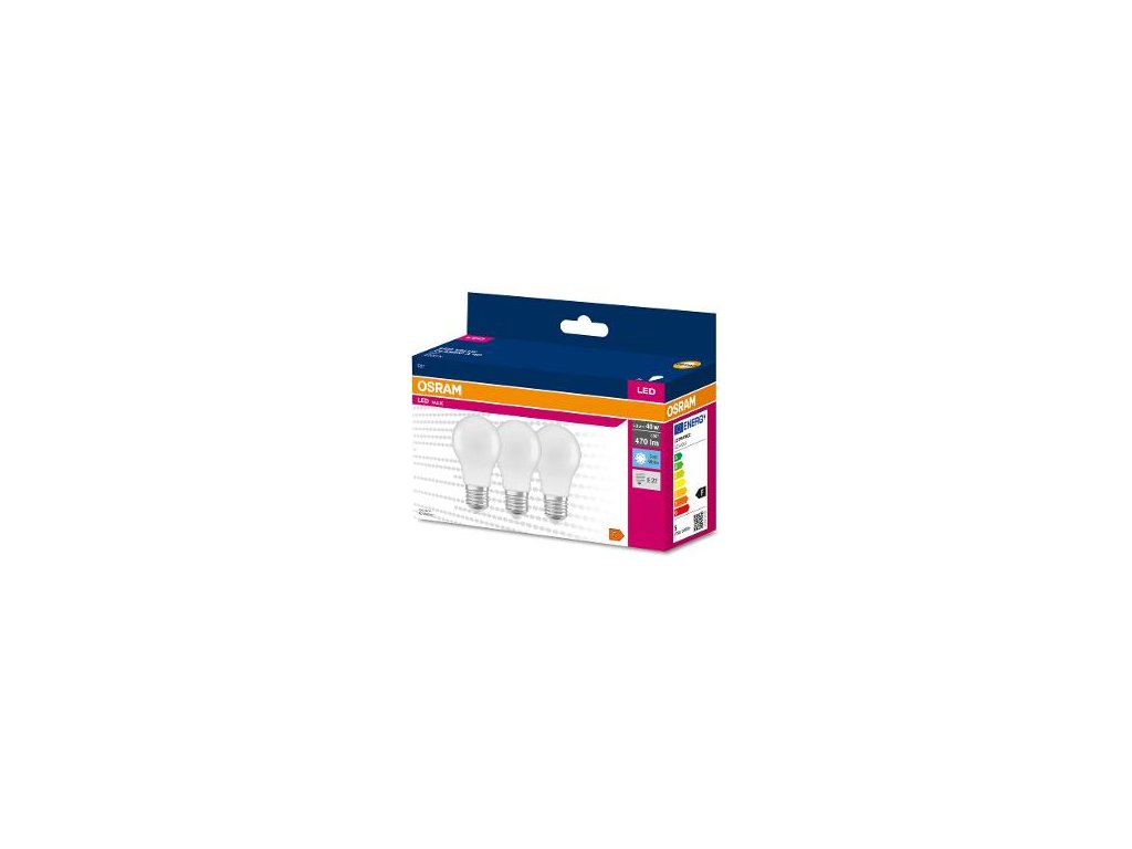 LED Cla. A 40 4.9W/4000K E27 3pack OSRAM