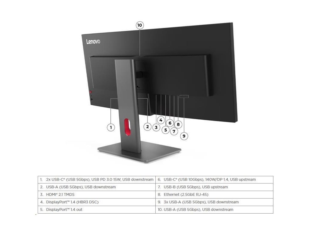 | Špeciálne funkcie | HDR10 Compliance Lenovo Accessories and Display Manager Lenovo Accessories and Display Manager podporuje Windows 10 & 11, Mac OS a Windows On Arm (funkcie sa líšia podľa systému). Lenovo Accessories and Display Manager je kedysi nazývaný Lenovo Display Control Center. LDFM (Lenovo Display Fleet Manager) Prírodné nízke modré svetlo Smart Power |