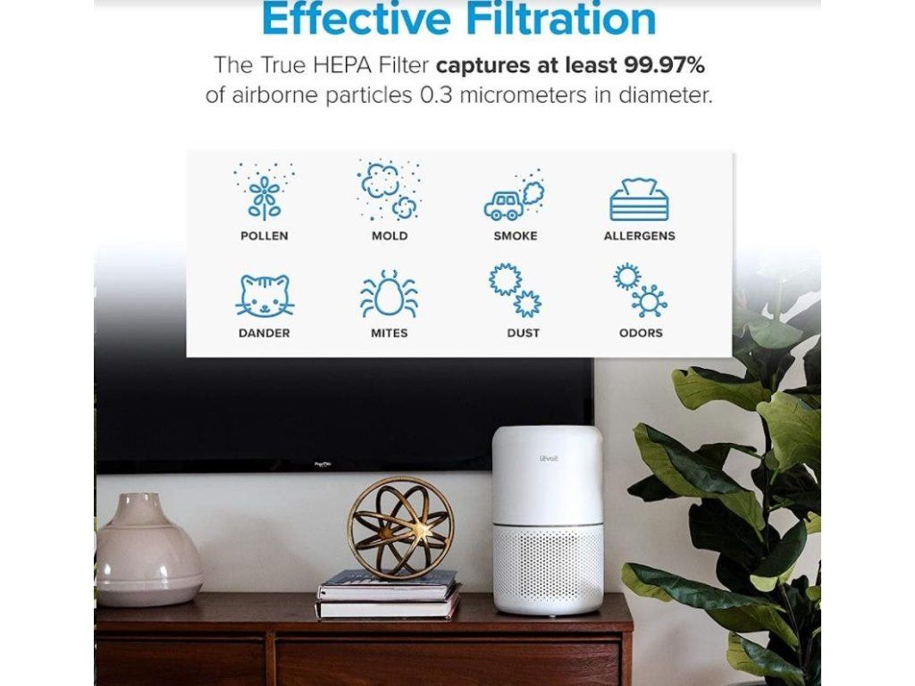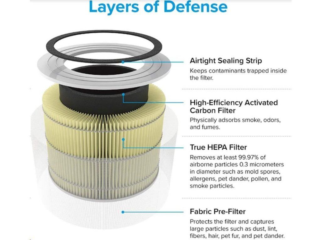 Druhou vrstvou je HEPA filter H13. To odlišuje Levoit od konkurencie, pretože filter HEPA H13 je oveľa kvalitnejší a spoľahlivejší ako bežne používané HEPA H11. Tu sa odfiltrujú jemné prachové častice, pleseň, baktérie, peľ, dymové častice, roztoče a srsť.