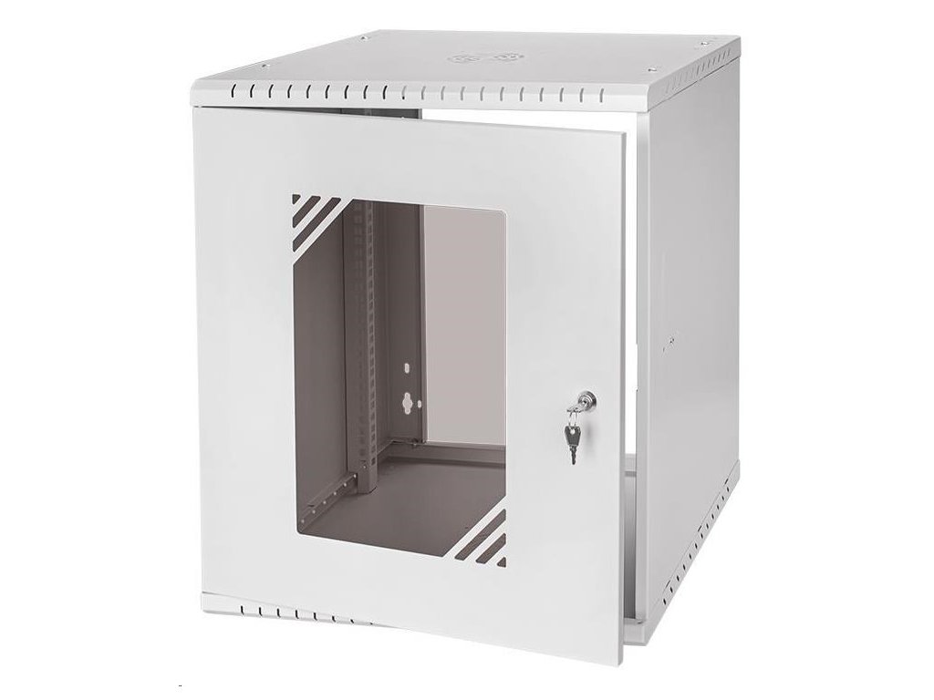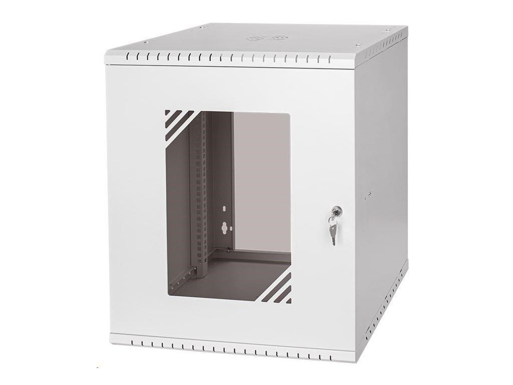 LEXI-Net Basic Nástenný rozvádzač 19" 12U 520x450, sklenené dvere, sivý Štandardne sa dodáva v rozloženom stave Hĺbka 450 mm Farba sivá RAL 7035 Materiál oceľ s práškovým nástrekom 0,8 mm Hmotnosť 11,6 kg Hmotnosť vrátane balenia 12,1 kg sklenené dvere Rozmery balenia 595 x 555 x 120 mm Vonkajšie rozmery zmontovaného rozvádzača 520 x 600 x 450 mm Krytie IP20.Dodatočné parametre