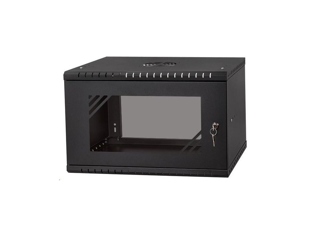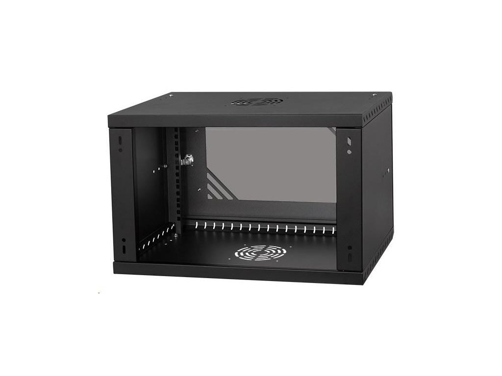 LEXI-Net 19" nástěnný rozvaděč Basic 6U 520x450, skleněné dveře, bez zad, rozložený, černý