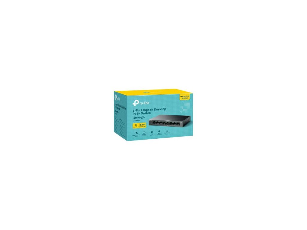 TP-LINK LS108GP Switch 8-Port/10/1000Mbps/Des/PoE+ - 8-portový gigabitový stolný prepínač s 8-portovým PoE+, Osem gigabitových portov s automatickým vyjednávaním poskytuje prepínaciu kapacitu až 16 Gb/s, Osem gigabitových portov PoE+ kompatibilných s 802.3af/at sa jednoducho pripája a napája pevné zariadenia, ako sú IP kamery, prístupové body a IP telefóny pomocou jediného kábla. Každý port PoE podporuje výstup až 30 W PoE, S režimom Extend dosahuje prenosová vzdialenosť PoE až 250 m, čo je ideálne pre nasadenie monitorovacích kamier vo veľkých oblastiach, PoE Auto Recovery, Odolné kovové puzdro a dizajnZákladné parametre