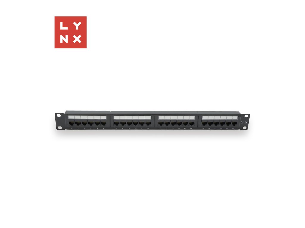 LYNX 19" patch panel 24-port, UTP Cat5e, 50µ, nestíněný, černý