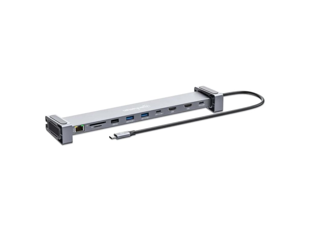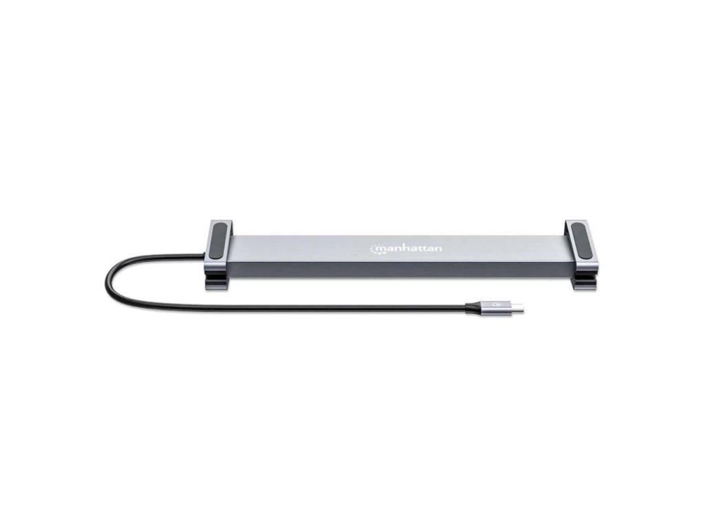 MANHATTAN Dokovací stanice USB-C 10v1, 2xHDMI, 2xUSB-C, 3xUSB, 1xRJ45, čtečka SD karet, šedá