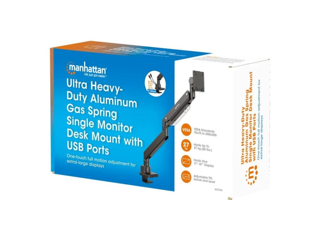 Kloubové rameno pre jeden 17" až 57" monitor do hmotnosti 27 kg, možnosť nastavenia výšky, náklonu, natočenia a otočenia, průchozí porty USB-C a USB-A, inštalácia pomocou C-svorky alebo prechodky, čierna farba